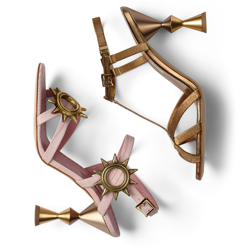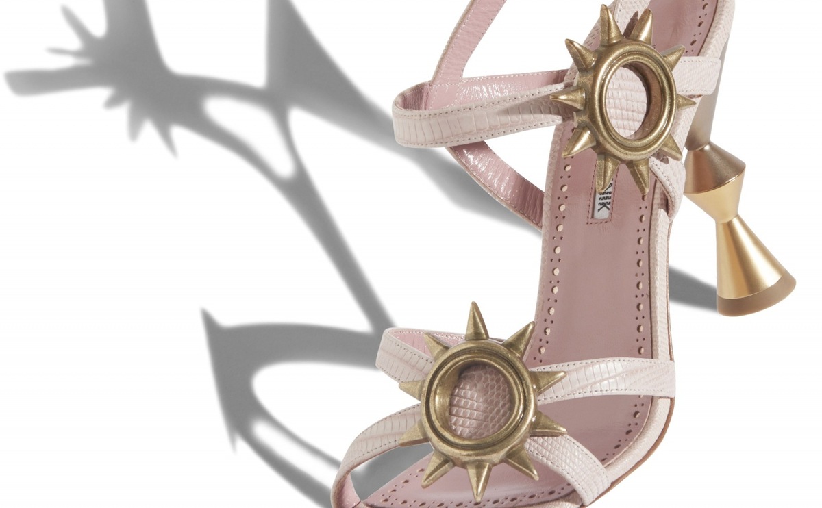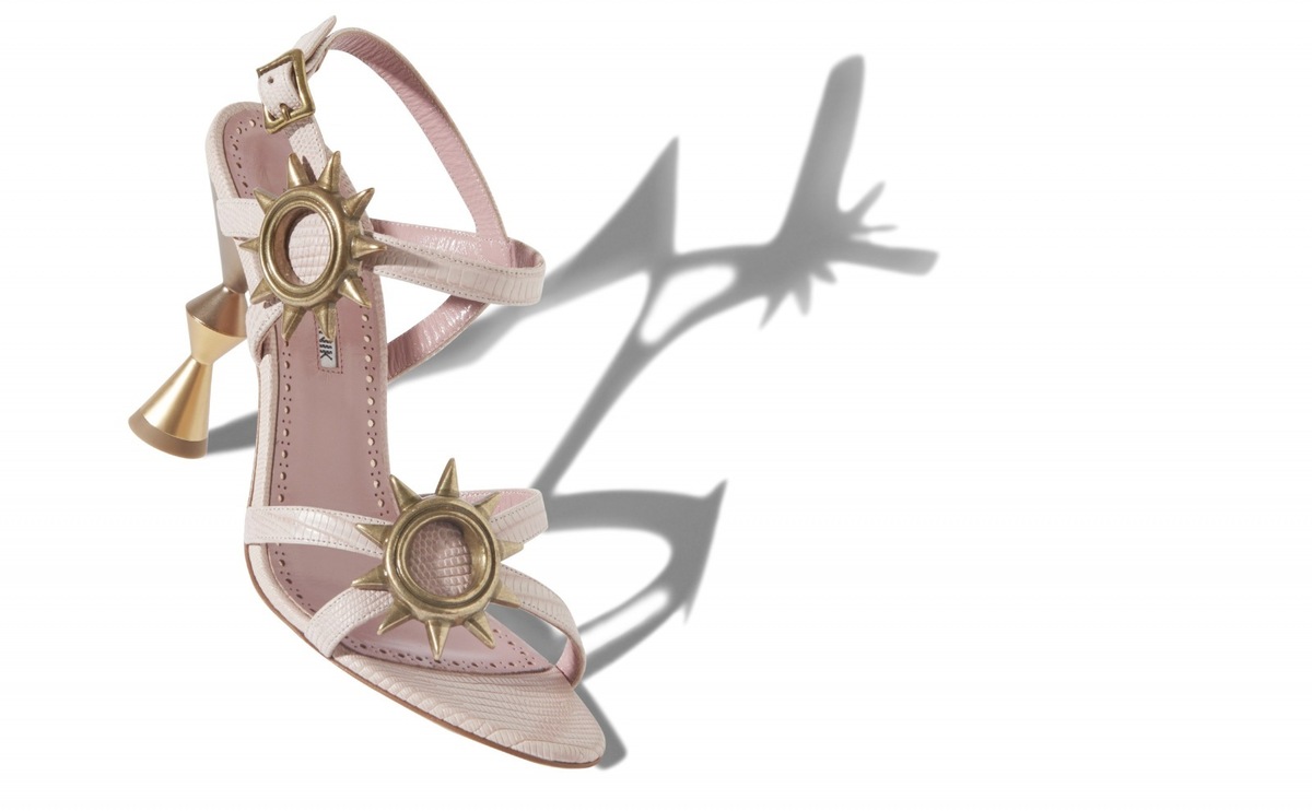 The spring season is inspired by the 20th century modernist sculptor Constantin Branucusi. As a result of the fashion genius of Manolo Blahnika, you can see the light pink leather heels with gold heel and metallic sun-shaped applications. If you are captivated by this jewel like us, then prepare some place in the shoe rack and 1145 EUR.