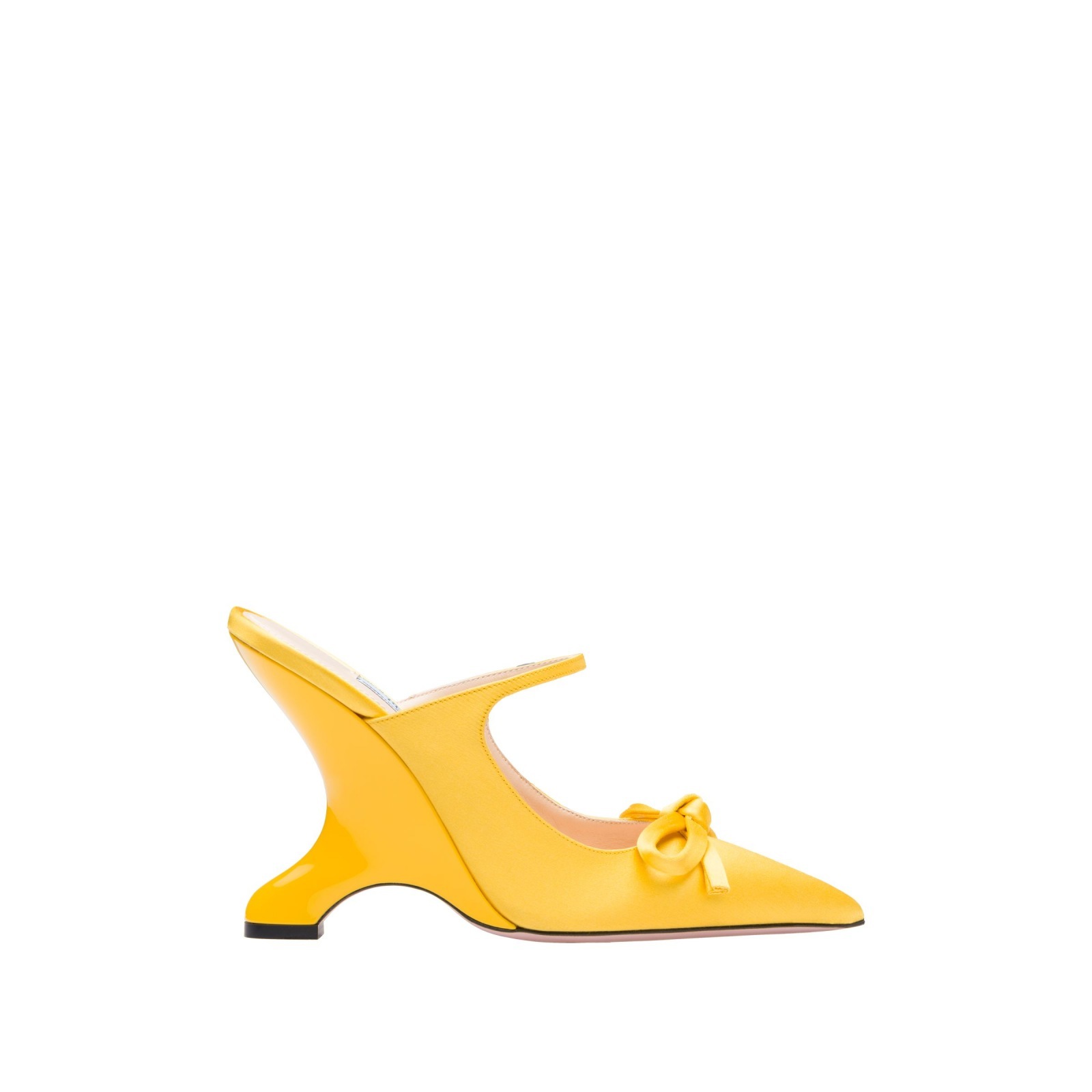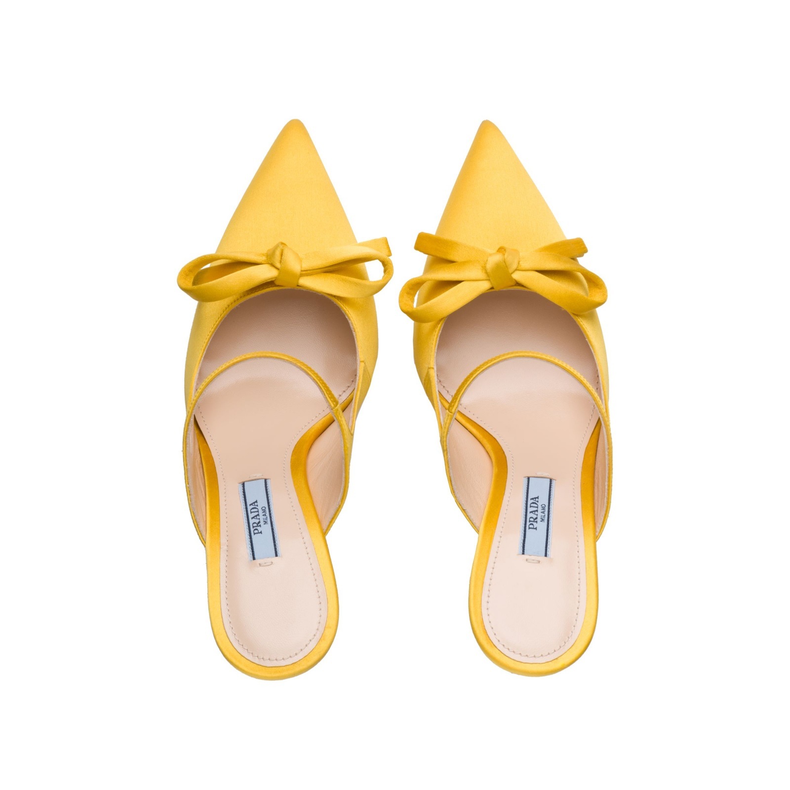 Prada also comes with a spring shade, and it's a pretty hot one - canary yellow! You can buy a satin piece with an unusual heel shape for USD 950.