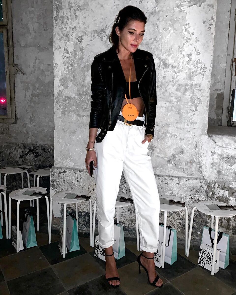 Try a stylish Balenciaga shoulder bag - it might look a little like an overgrown fanny pack, but an amazingly chic one! While Monika decided to go for a white, gray and black classics, you don't have to be afraid to choose a more distinctive color - how about royal blue? Hmmm?!