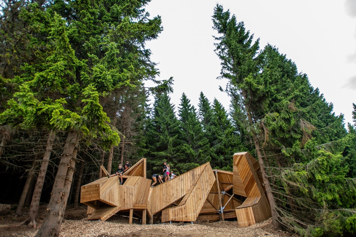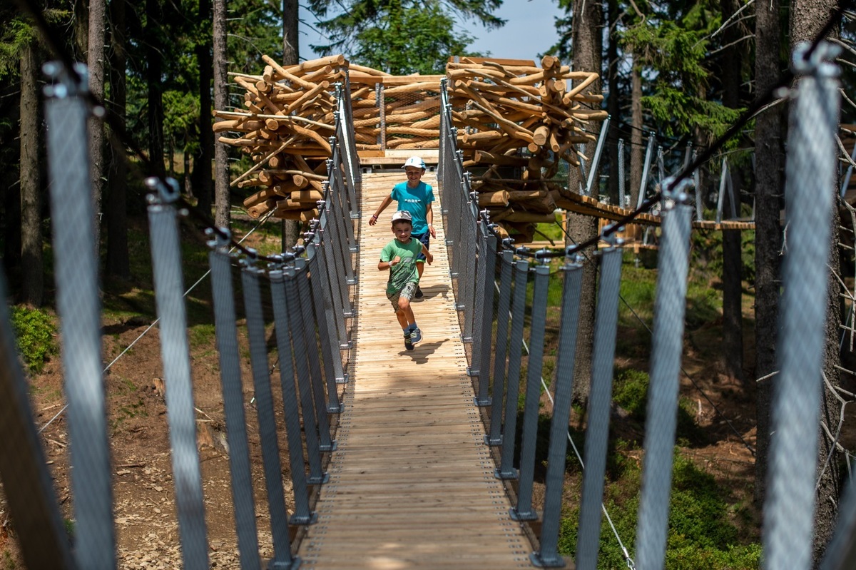 The unique project designated for children was ceremoniously opened up on 21. July at the upper cableway in Pec pod Sněžkou. It is made up of luxury wooden climbing frames in the form of animals, such as you could actually come across in Krkonoše Mountains; in larger than life size! You can find here a nine-metre adder, you can speed through antlers of a fallen deer like on a toboggan. You can learn something of the bird empire at a height of 5 metres above ground, when under the leaf canopy you can walk through their huge nests.