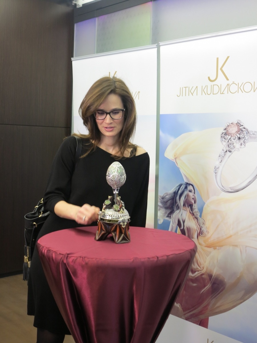 The luxury golden egg will be unveiled at the boutique JK Jitka Kudláčková in the presence of Jitka Kudláčková, her husband, the director and the co-owners of the jewellery store Dušan Mlynarčík and Klára Doležalová.