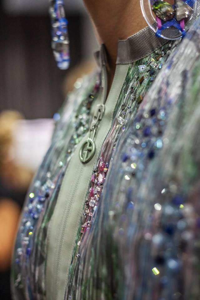 The luxury outfits are complemented by massive necklaces, branded pendants or pastel colored mesh bags. Although the SS19 collection is carried in soft tones – metallic gray, blue, silver and pink, the luxury outfits of Giorgio Armani ultimately reflect women's power and beauty.