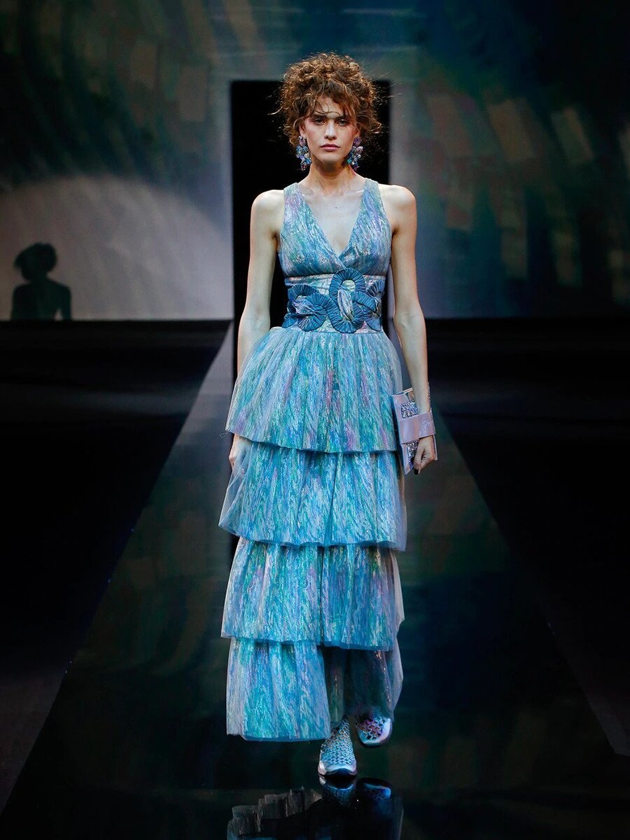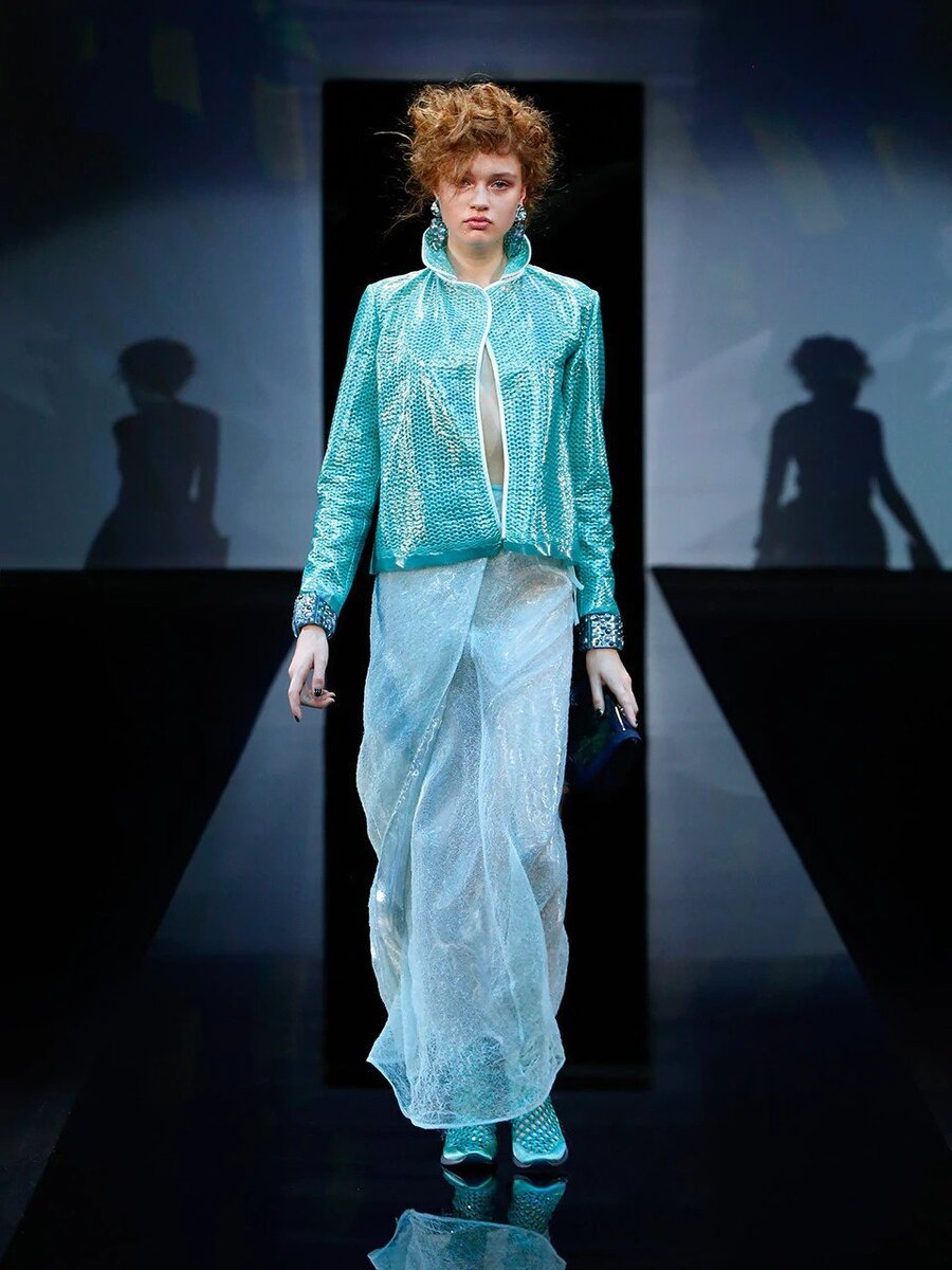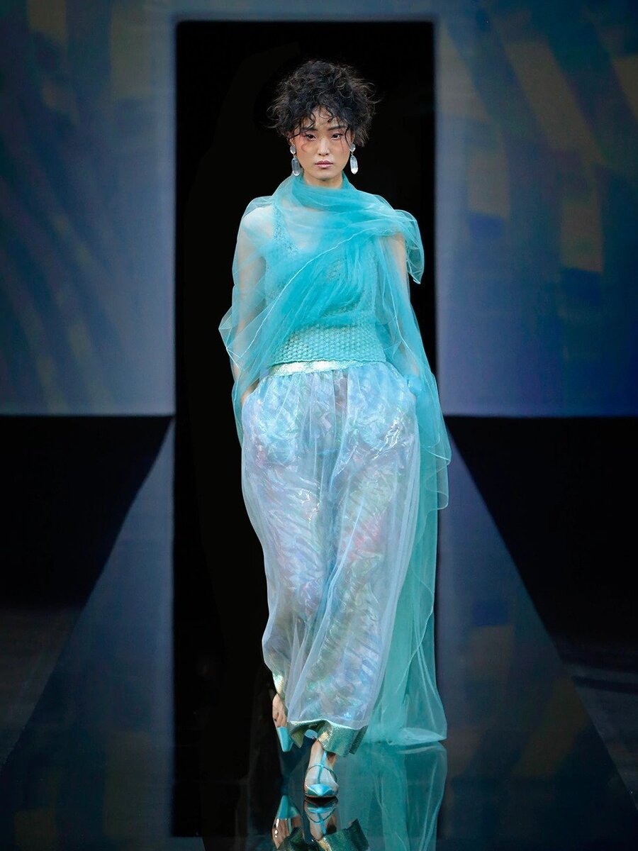 The Giorgio Armani pastel SS19 collection at first seemed to be celebrating the colorful era of the 1980s. But it's not just the 1980s that were Giorgio's inspiration. I can also see a touch of the fairy tale "The Little Mermaid". Yes, it sounds funny, but what about those necklaces reminiscent of the tentacles of a turquoise octopus or the scaly dress? In short, the good old sea world.