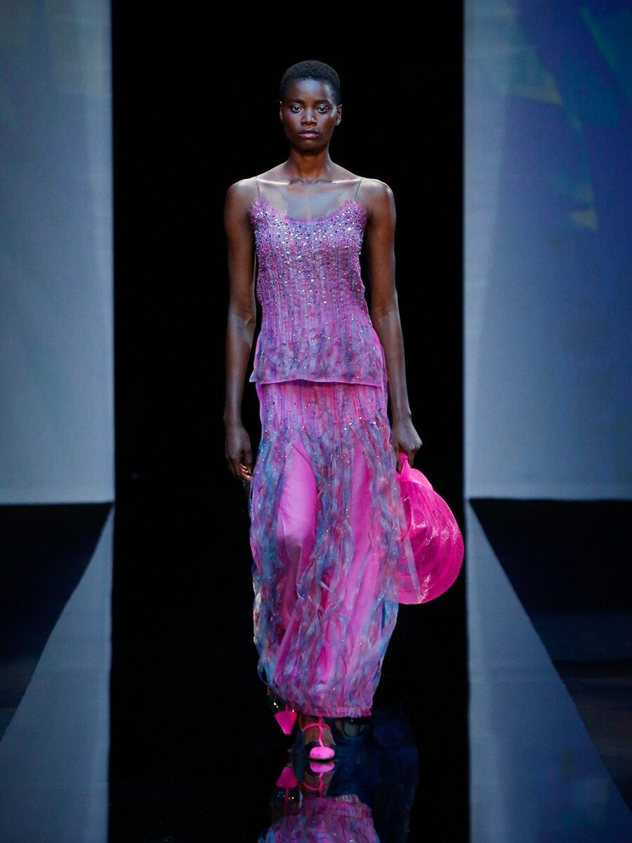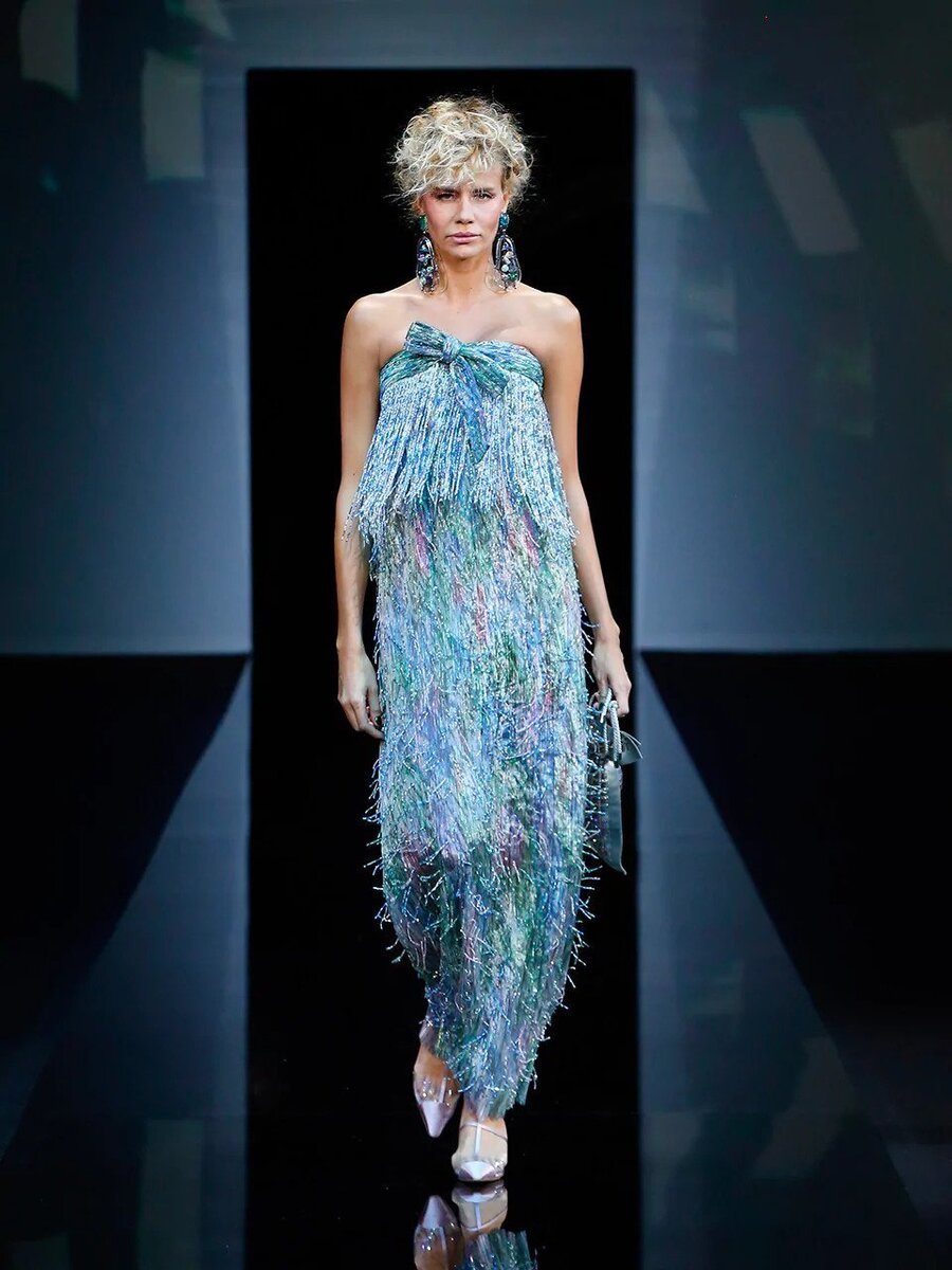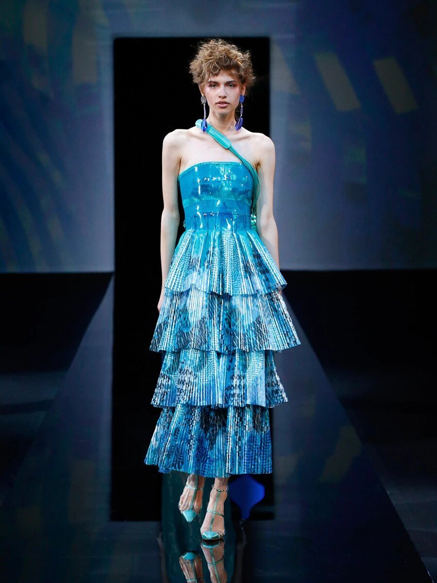 The Giorgio Armani pastel SS19 collection at first seemed to be celebrating the colorful era of the 1980s. But it's not just the 1980s that were Giorgio's inspiration. I can also see a touch of the fairy tale "The Little Mermaid". Yes, it sounds funny, but what about those necklaces reminiscent of the tentacles of a turquoise octopus or the scaly dress? In short, the good old sea world.