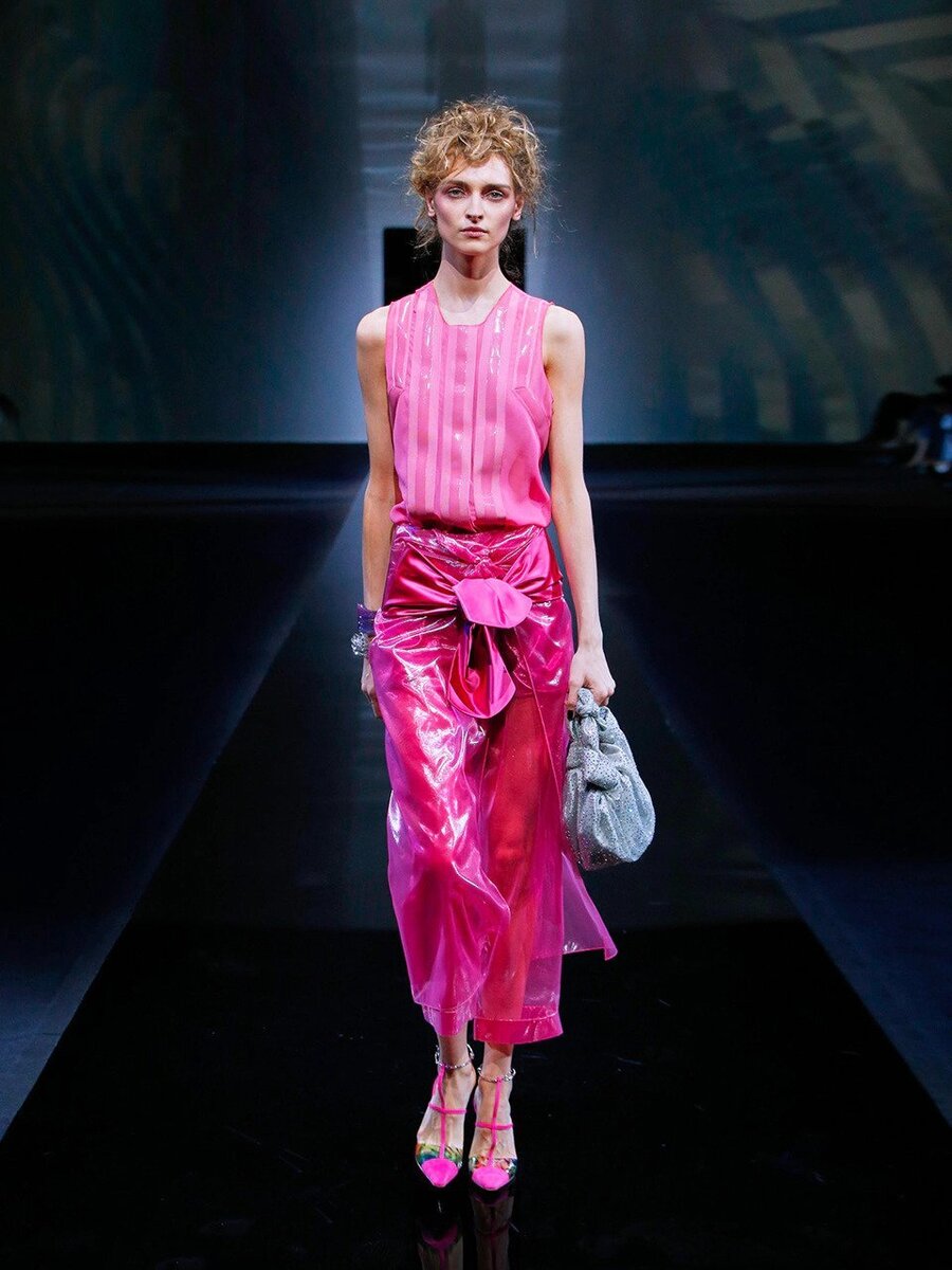 What, in my view, is a big flop, is a pink outfit made up of the delicate raspberry top, beautiful PINK shoes and the totally awful see-through pants from some kind of chiffon. Not only is this type of fabric totally unpleasant to touch, but it also makes you look as if you were walking around in a plastic bag. This really didn't work out...