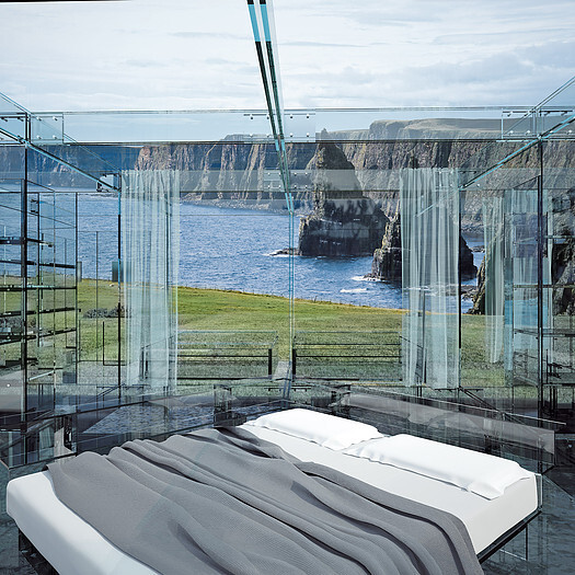 Their luxurious design houses can be built anywhere in the world and blend in the surrounding nature. Each part of the house with the exception of the ground floor is made of glass plates that form walls, floors or staircase. Houses in sunny locations are made of lighter glass as there is no need to protect the house against outside forces. Houses intended for a colder climate are built from stronger and thicker glass in order to be able to withstand namely snow. Such glass also helps insulate the interior.