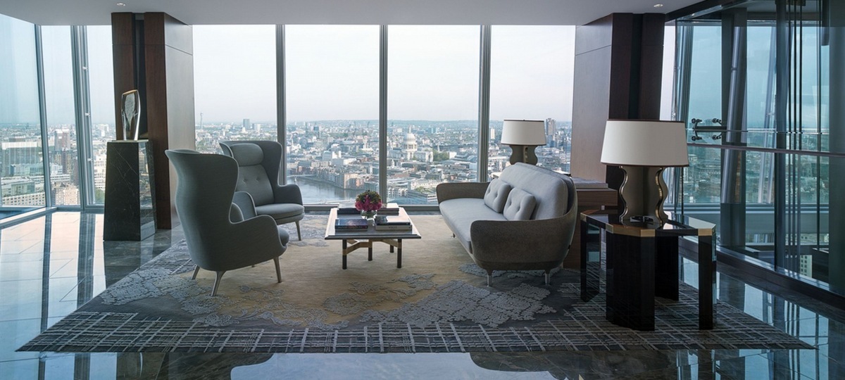 The building has 72 luxury residences, which the 15 additional floors form the glass superstructure. The first 28 floors offer office space for 7,000 people and according to the architect, the bottom layers should blend in with the surroundings, while the structure should dwindle going upwards. The next two floors house 2 restaurants, the Shangri-La Hotel, and another 12 floors contain private apartments and viewing platforms for the general public.