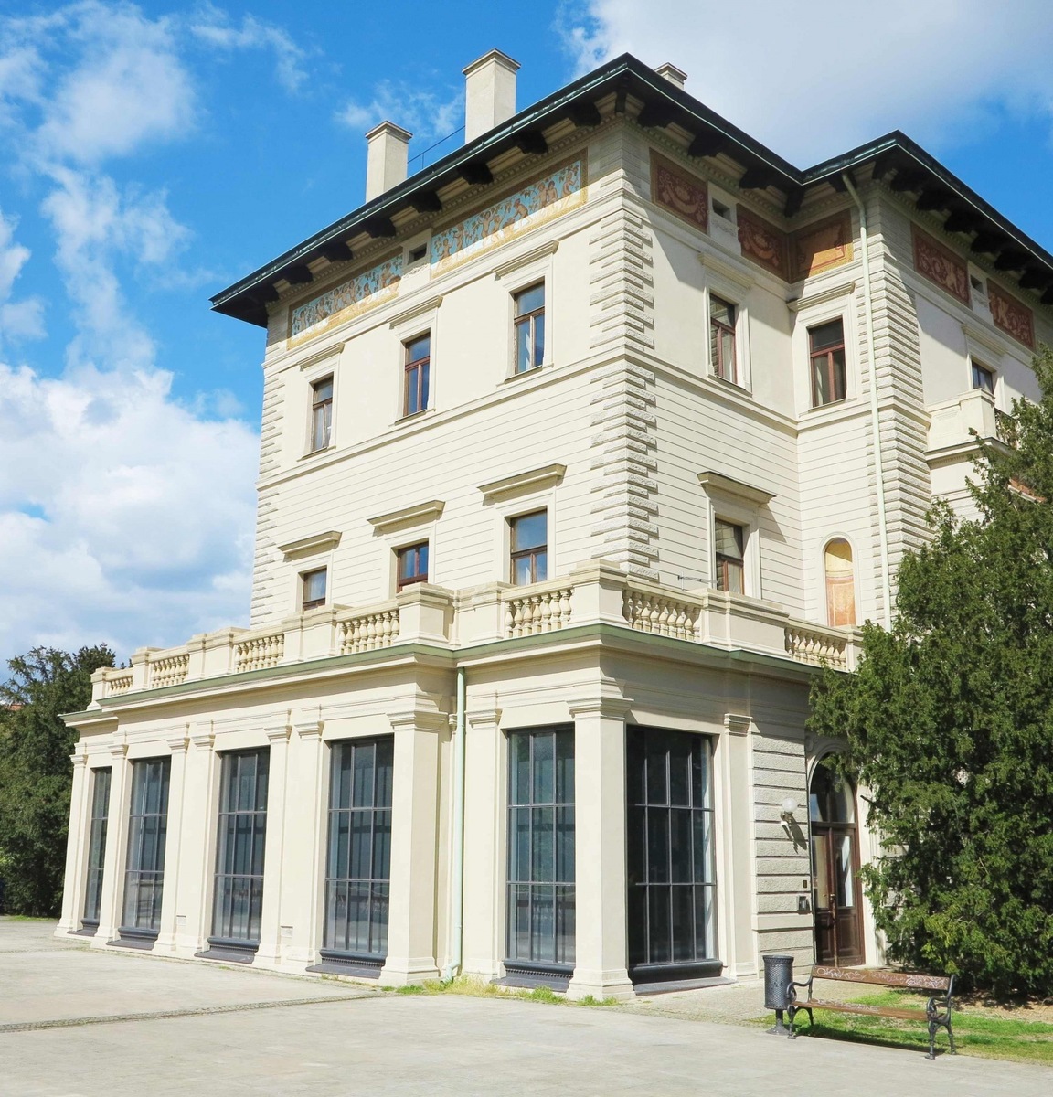 Gröbe Villa was built in 1870-1874 based on blueprints by Antonín Barvitius. The interior was designed by Josef Schulz and construction overseen by František Havel. The author of the beautiful frescos on the façade is the painter Kugler of Vienna. Indoors, you can admire statutes by sculptor Detem.