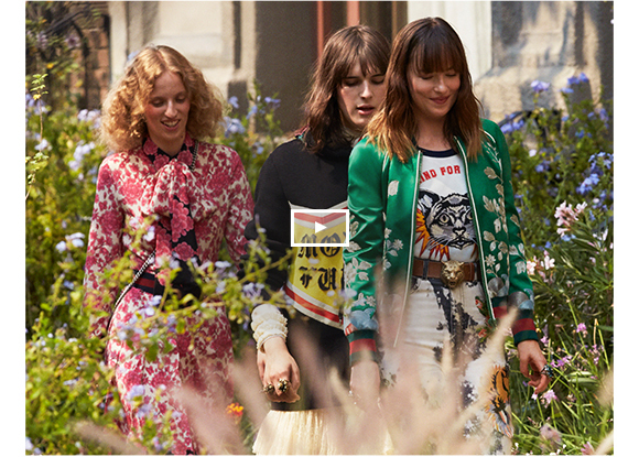 The faces of the campaign, authored by Glen Luchford, are Dakota Johnson, Petra Collins and Hari Nef. Their uniqueness and beauty is depicted in a city, whose urban environment becomes an imaginary garden full of flowers.