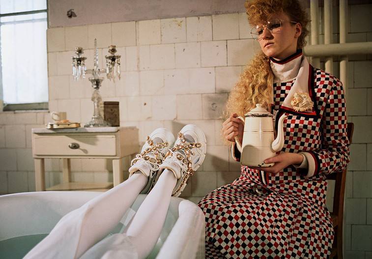The crystals placed on removable elastic straps adorn five out of the total of 18 models of the luxury collection Pre-Fall 2018. If the contemporary design of sneakers ceased to entertain you, you can easily change it.
