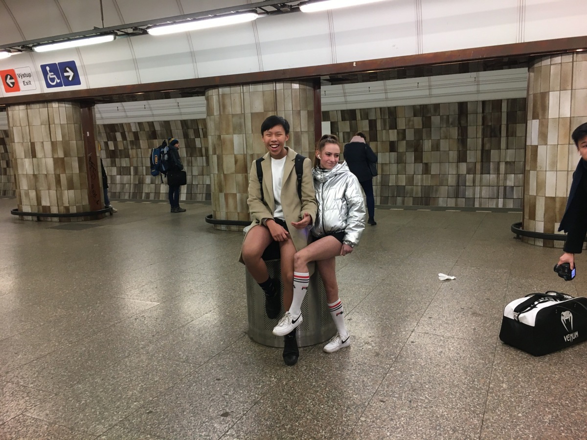 Although the weather forecasts promised it would get warmer in the weekend, it was just a few degrees above zero on Sunday evening. However, that didn't seem to bother the dozens of young people who took off their trousers right under the horse on Wenceslas Square and began riding the subway. The purpose of the event, which is globally called No Pants Subway Ride, is not very profound - it merely serves to entertain other passengers.