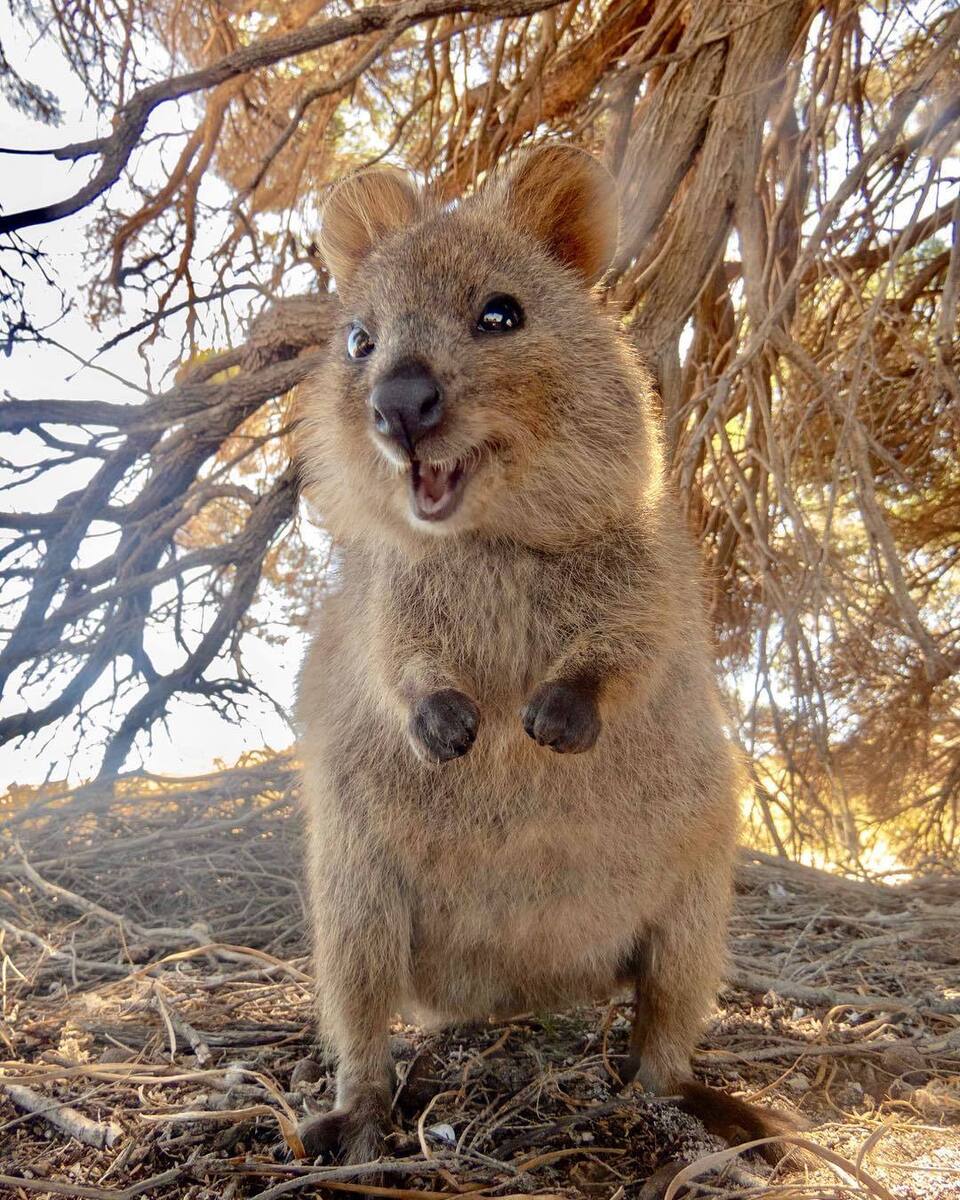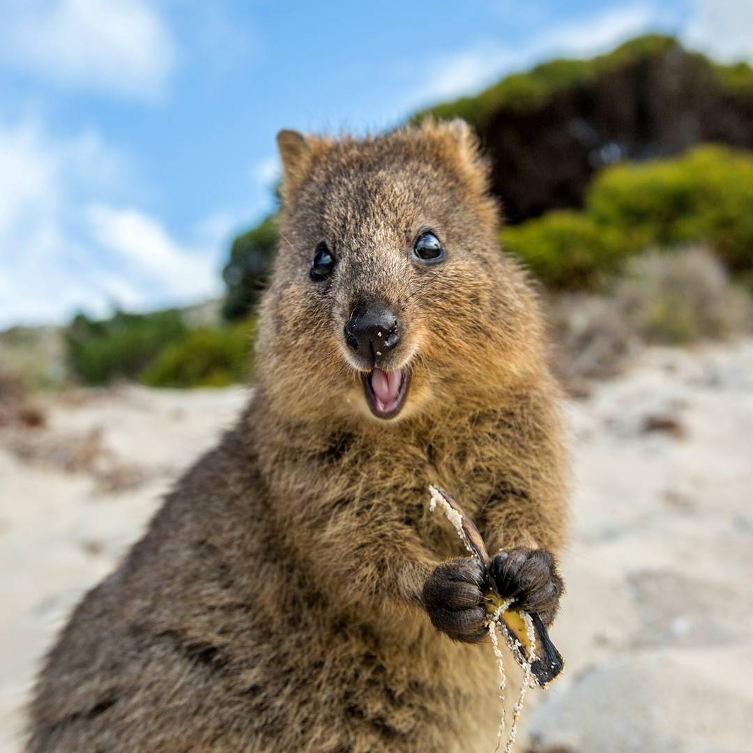 He likes to pose for a selfie with his signature smile, as he did with Teri Hatcher or tennis player Roger Federer. He lets people pet him and will stuff his face with any delicacies within a hundred meters. Who are we talking about? The happiest animal in the world - the quokka. This little pudgy kangaroo with a thick fur coat will definitely put a smile on your face!
