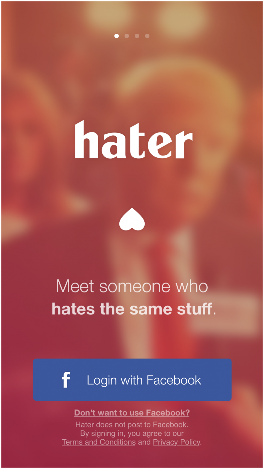 The above unfortunate scenario could easily be avoided by using the Hater dating app. There, you are encouraged to be very specific about the things you hate or dislike – but you can of course also speak about what you do like. The luxurious app will then generate the best matches for you based on that information, sorted by location starting with those nearest to you.
