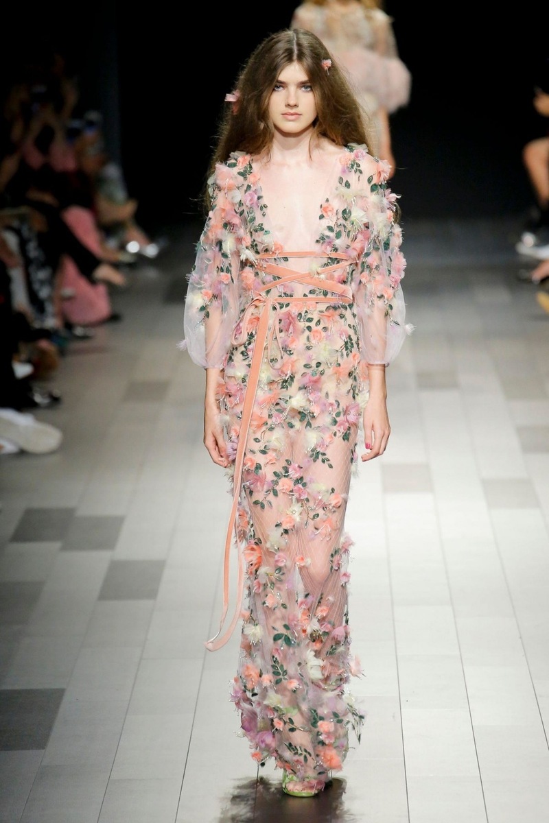 Browse the heavenly S/S 2018 collection in the gallery. It offers everything you could ever dream of. Narrow and elegant tailoring, wide princess skirts, rich layering, a flood of blossoms, gold appliqués, high slits, deep necklines and playful maxi bows. This collection is simply fun!