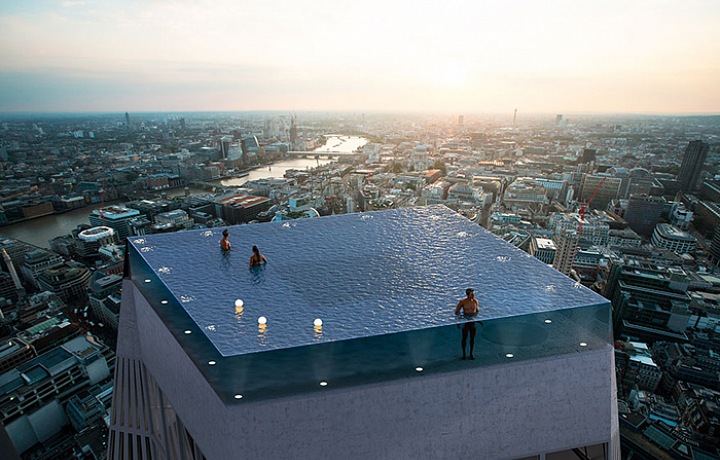We all want something. The tallest building, the richest kingdom, the most modern transport... simply the BEST. Architects from all over the world jump somersaults to make the world interested in their project. To have their name carved into stone so that something remains after them. In times of heat, the idea of water easily. So next year London will have a real unique summer. An infinity rooftop pool on the 55th floor of a skyscraper.
