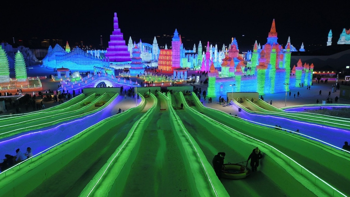 Some statues were associated with the brand name of Pepsi, an oversize Pepsi ice machine. The snow statues didn´t lag behind, such as one built according to a multiplayer online mobile game "Arena of Valor." Also, the 340-metre-long ice slide with the theme of North light offered luxurious entertainment. A lot of attention, too, was attracted by a 24-metre long luxury ice train, which only lacked a conductor with a whistle round his neck, announcing departure.