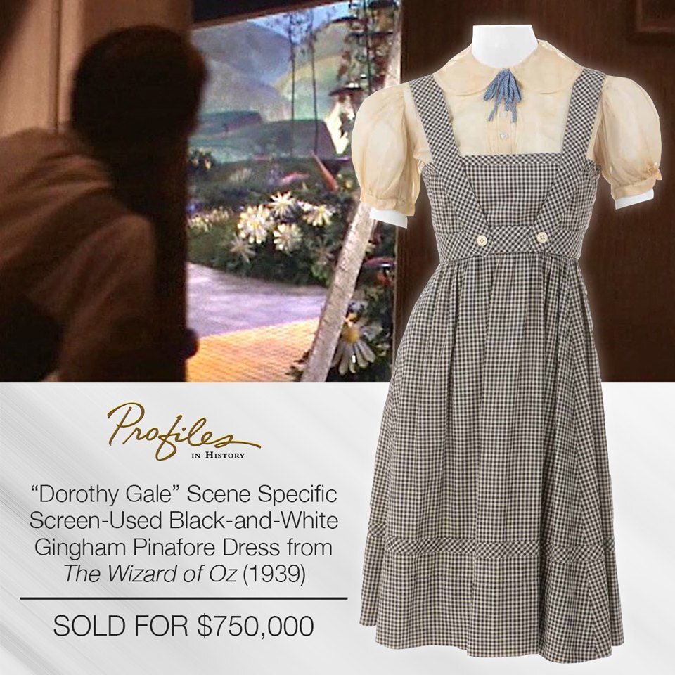 Unlike the standard blue and white dress that Dorothy wears in Oz, this black and white one was designed and made only once. It is of major importance in film history specifically because of the famous transition into contrasting colors.