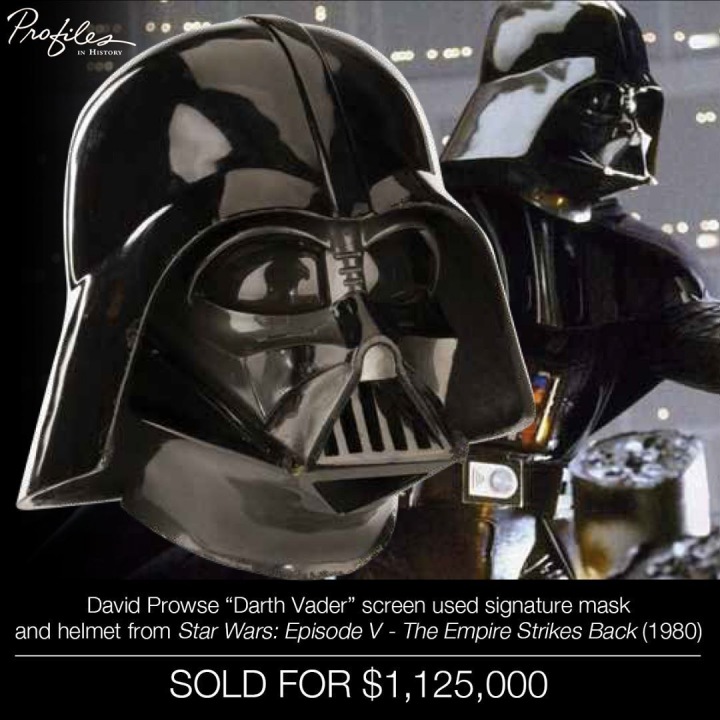 The most expensive piece that got auctioned off was Darth Vader's helmet and mask from the movie Star Wars: Empire Strikes Back. An anonymous participant was willing to pay over a million US dollars for this movie marvel, which is around 23 million Czech crowns. The original estimated price was between 250 to 450 thousand US dollars. It's no wonder that the final price surprised everybody.
