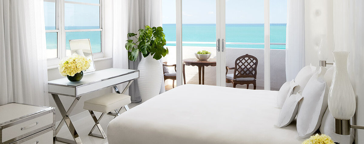 Philippe Starck gave the luxury rooms a playful and unobtrusive look. The original white rooms of the Delano Hotel, which guarantee supreme comfort for you to relax in, are famous the world over. They are fitted with hand-crafted luxury carpets and oversize plants. Choose between a unique view of the ocean or a luxurious view of the wonderful city.