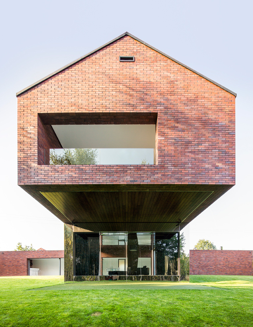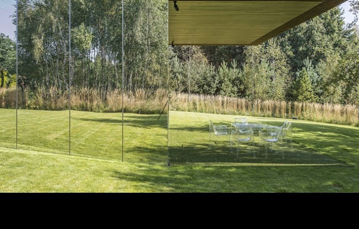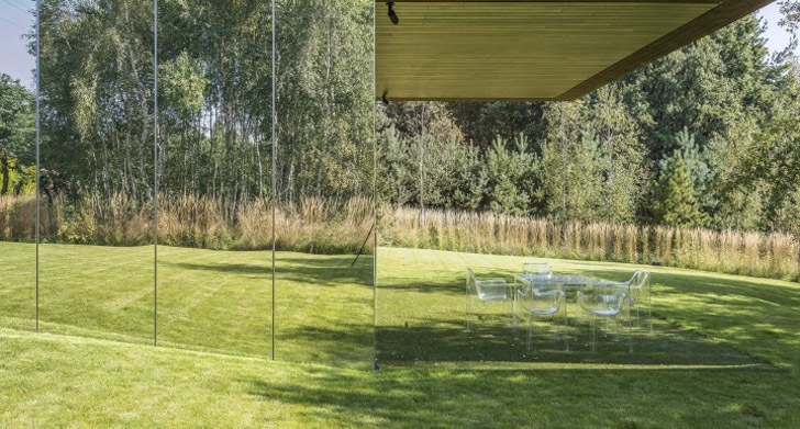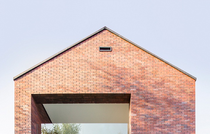 Owing to the unique combination of mirrored walls, sliding glass panels and transparent glass railings, the house creates an impression of endless harmony between vegetation, masses of brick, concrete and unobtrusive luxury. As a whole, it lets the force of nature speak without any embellishment, and the mirroring effect multiplies the resulting impact. By turning the top floor ninety degrees to the side and positioning it into the space of the private courtyard, the ordinary brick house becomes a building with stunning perspectives.