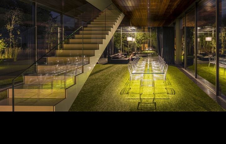 At first glance, the house does not differ from most modern buildings designed by today’s architects and designers, but upon closer inspection, you will find that nature penetrates the house through and through. The idea for the building was obvious: nature – the garden, lawn and trees – do not need to be only around the building, but can be a part of it, while creating harmony in the overall appearance.