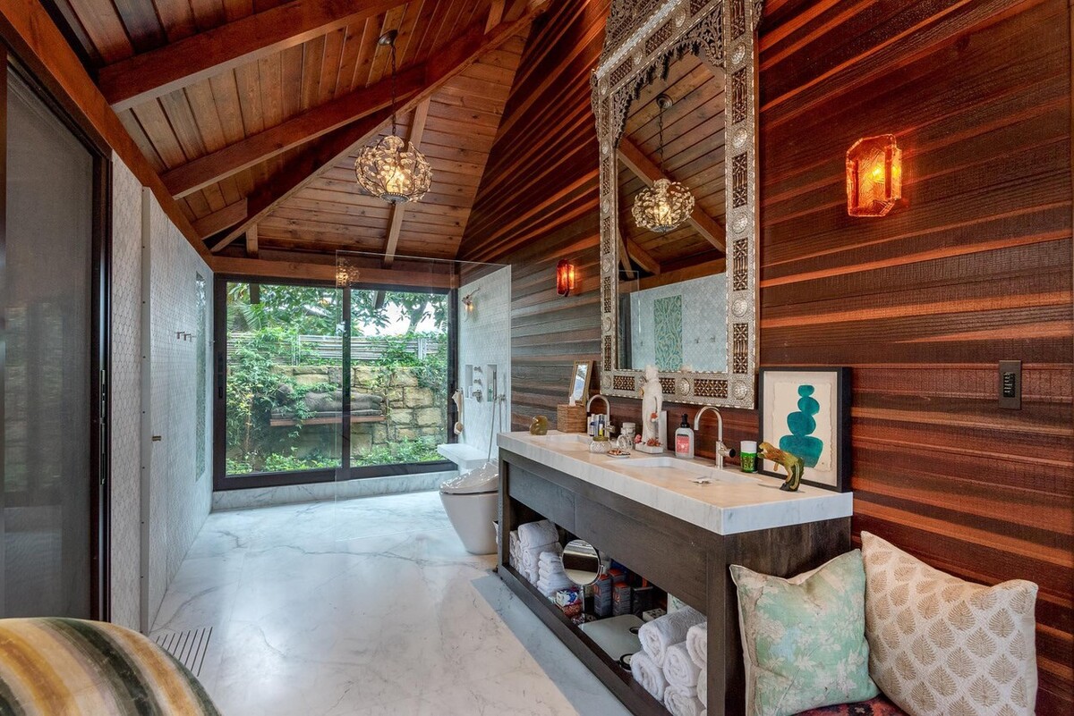 The famous tennis player will now relax on a five-acre plot in Santa Barbara. Balinese elements, wooden ceilings, a stone terrace and a separate studio. That's what her luxurious tropical jungle in sunny California looks like.