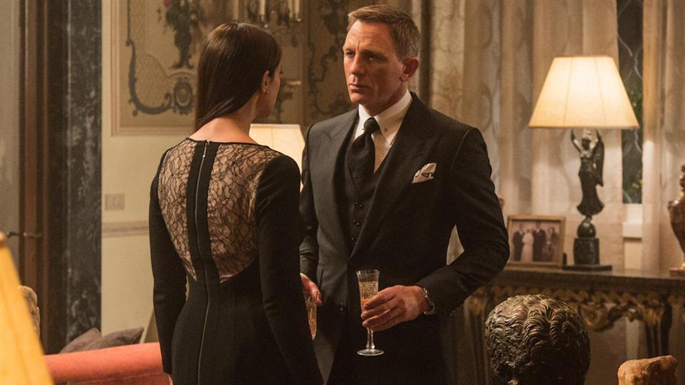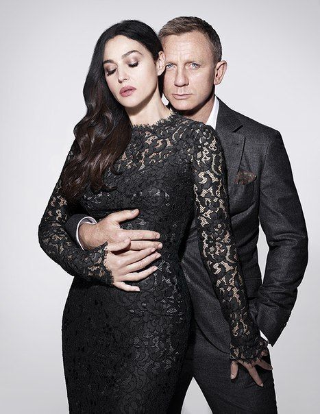 Daniel Craig: A brawny blond man with a tough look, who never misses a chilled glass of Bollinger champagne that has accompanied Bond in fourteen titles. Mostly he wore Tom Ford suits and Omega watches. He has a black Tom Ford suit in one of the Monica Belluci scenes in "Specter" (2015), which is still available on request.