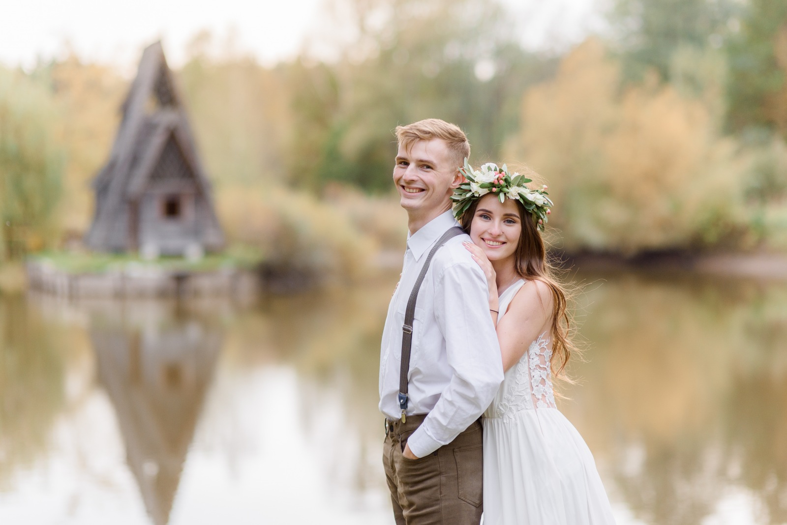 Although Canada does not have one typical wedding costume, the attire tends to be more relaxed and comfortable. Brides often choose light, loose dresses or elegant combinations instead of princess gowns. Grooms, on the other hand, prefer good suits, not necessarily tuxedos. Sometimes, the bride is dressed in a white robe with a train and a veil, often covering the face. Traditionally, she should have "something old, something new, something borrowed, and something blue" - each of these things has its meaning and is supposed to bring luck into the marriage.