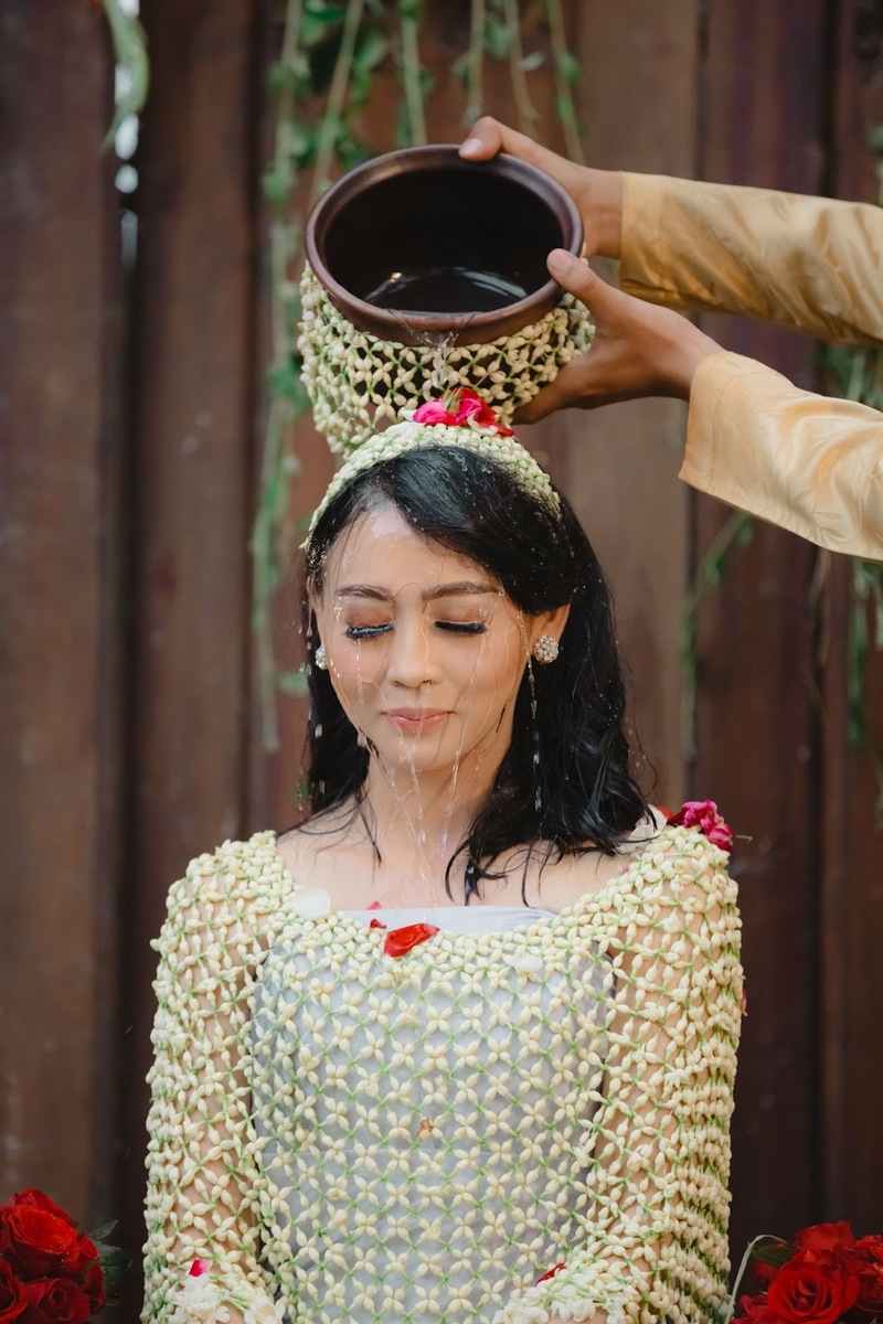The first one is called siraman and it's about purifying the body and soul. The bride is in her parents' house and the groom is in his. There should be no more than seven people at this ceremony. During this ceremony, the spouses bathe in a mixture of flowers, herbs and spices. It is believed that the water used in the bath cleanses and purifies the couple before the wedding, symbolizing the washing away of impurities from the past and the beginning of a new chapter in their lives.