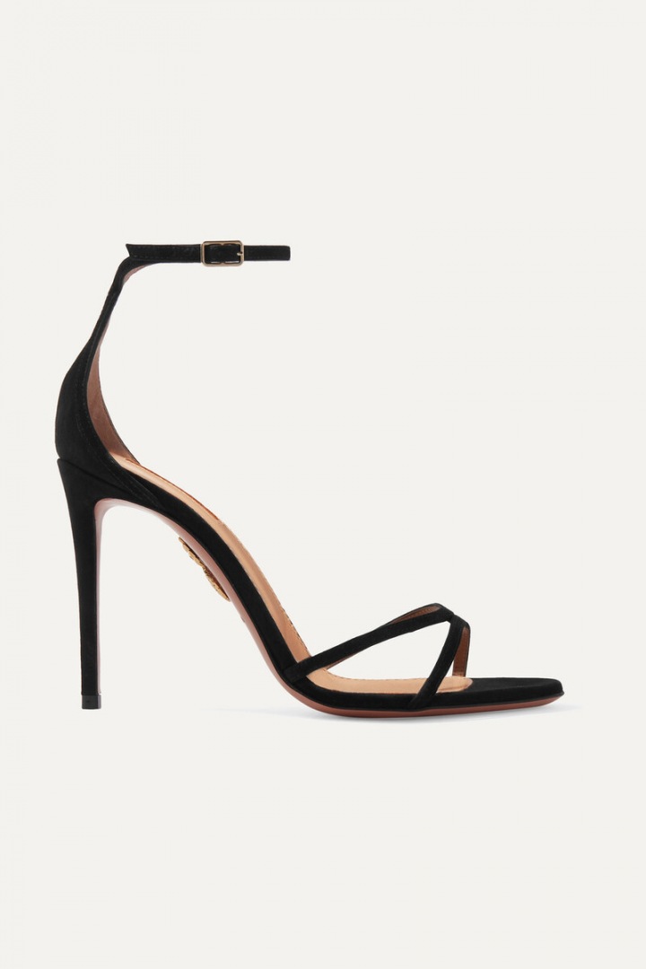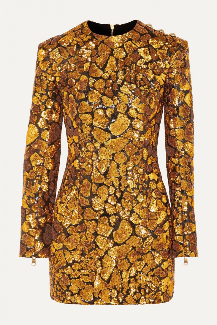 A luxurious gold mini dress and a black handbag, both by Balmain, will help you achieve the perfect look inspired by Tereza Maxová. And if you believed that tights could be worn only with closed shoes, the Czech supermodel will easily convince you otherwise. Follow her example and go for high-heeled sandals. Those from Aquazzura will be a great choice.
