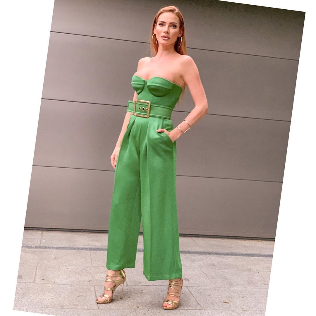Like the Slovak model, opt for the Elisabetta Franchi corset jumpsuit made of satin, which can be worn with or without a belt. Complete the outfit with Gianvito Rossi pumps, luxury Panconesi jewelry and round earrings from Hirotaka.