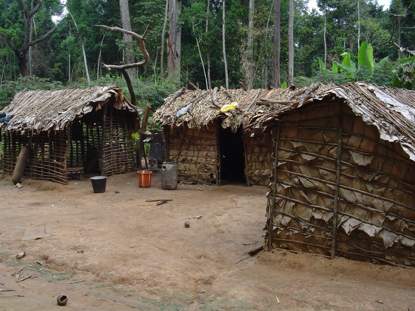 The Pygmies, who live in small groups, build temporary huts for living from bamboo trunks and large leaves they collected from trees. They still lead a primitive life. They spend most of their time hunting in deep forests and gathering fruit plants.