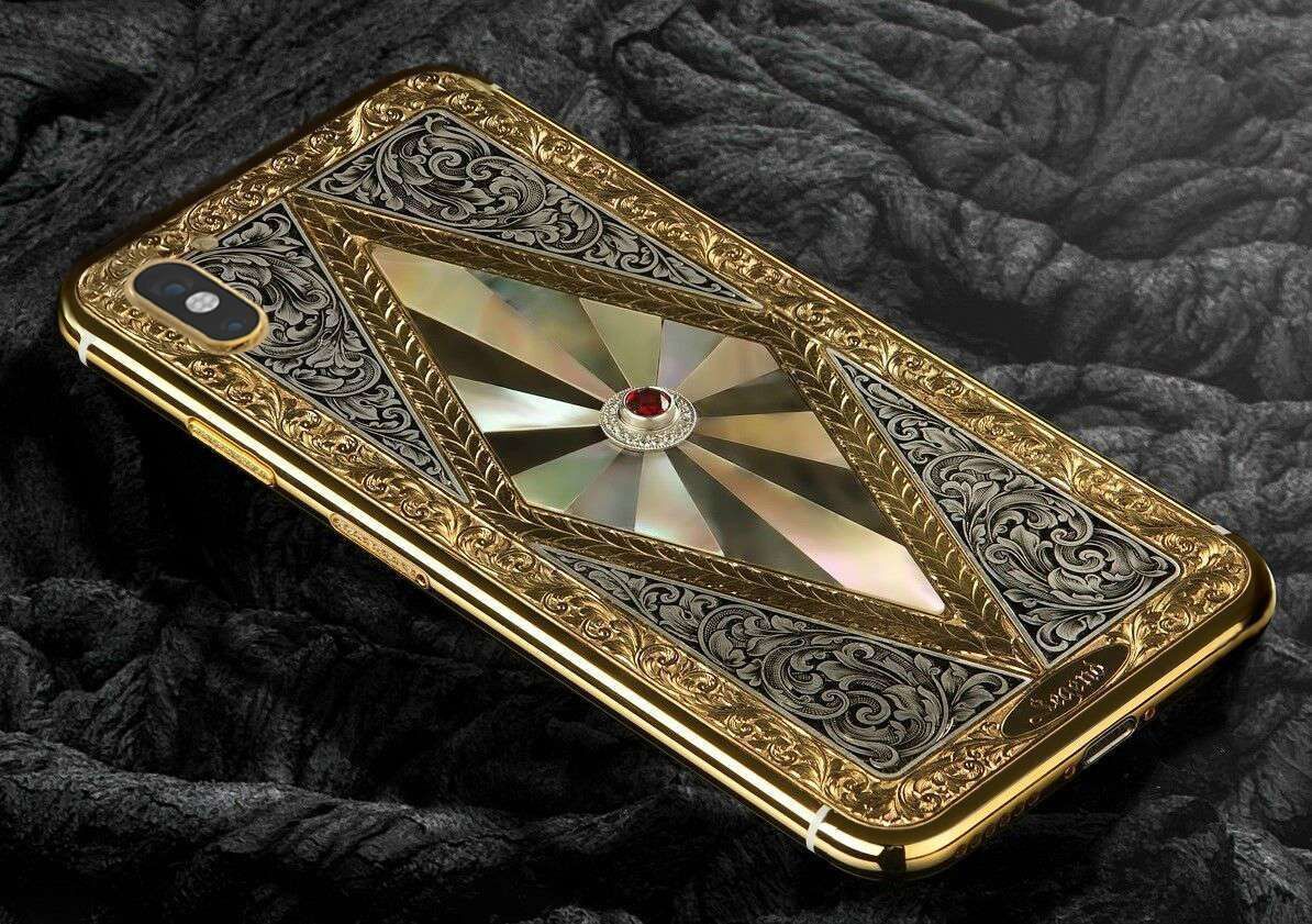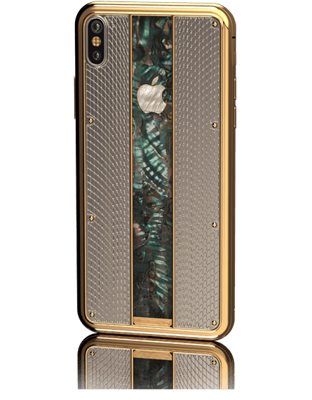 The Classique model was created with emphasis on a simpler yet elegant design for the iPhone X. The apple logo presents an exceptional image consisting of VVS1 class diamonds. It lights up when the device is being used, and the brightness of the logo can be adjusted. Different colours of diamonds can be used at the customer’s request. Price: EUR 3,290.