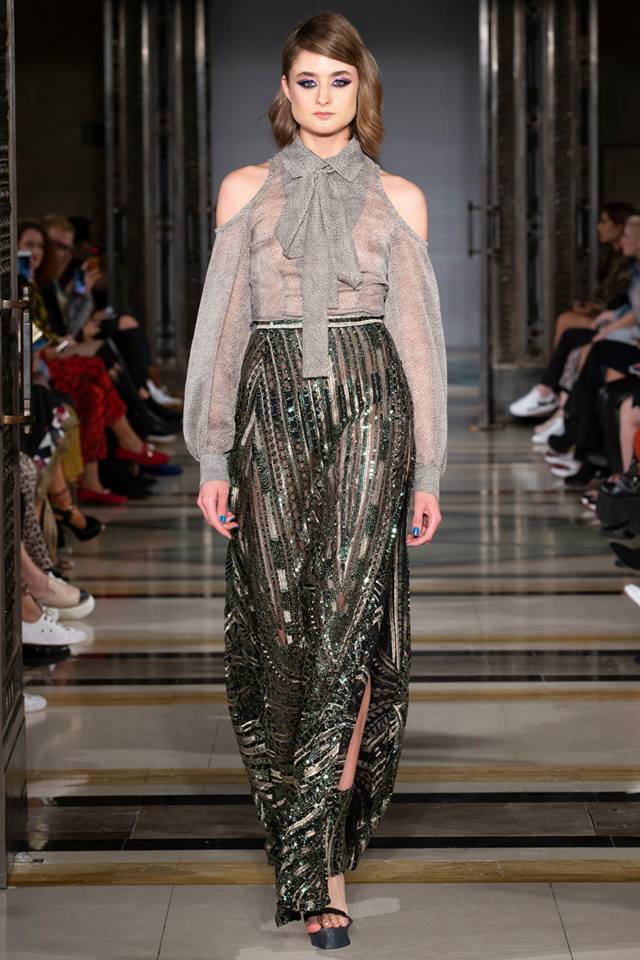 Balmain, Louis Vuitton, Moschino, Giorgio Armani, Céline, Givenchy, Thom Browne, Valentino, Roland Mouret, or Czech designer Jiří Kalfař. This is just a short list of all the designers who have presented extravagant metallics this year.