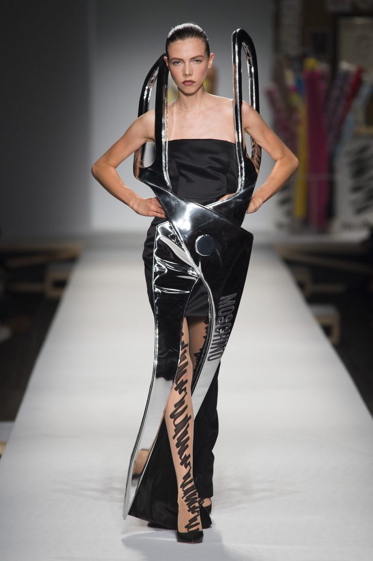 And now let's break down the fashion week NONSENSE. In my opinion, an absolute misstep was presented by the fashion house MOSCHINO. Silver scissors? Or the bright golden dress with a thimble on the head ... From my point of view, an absolute error.