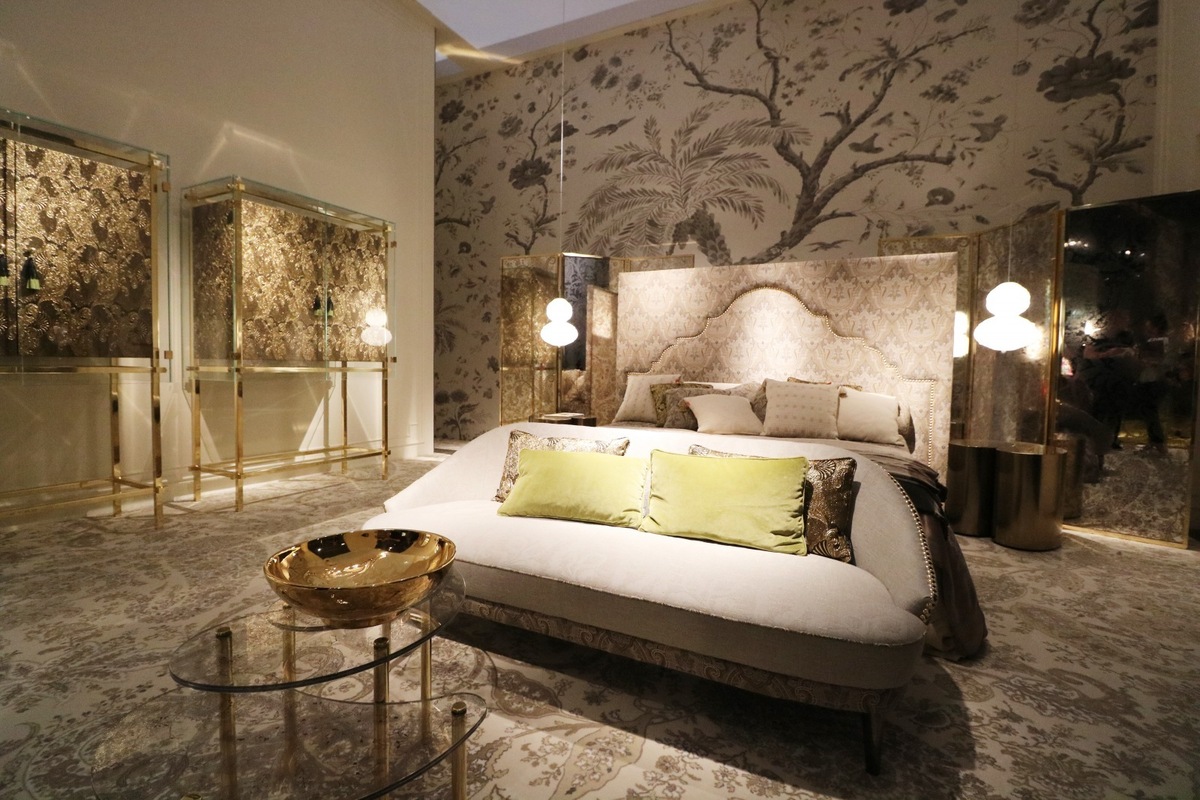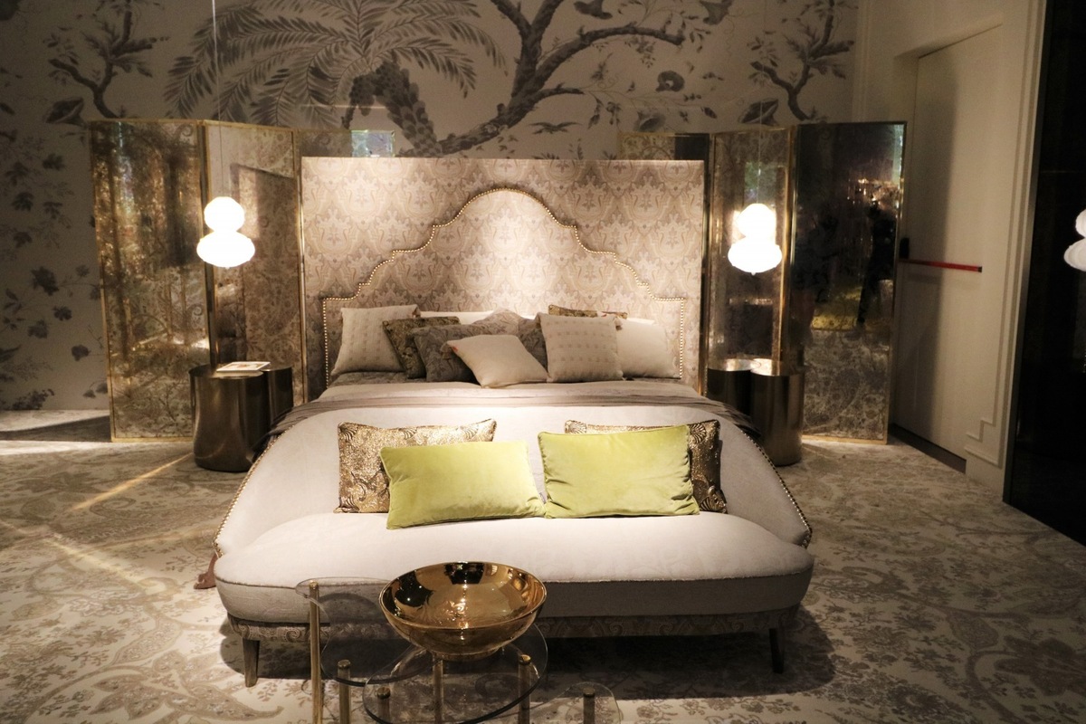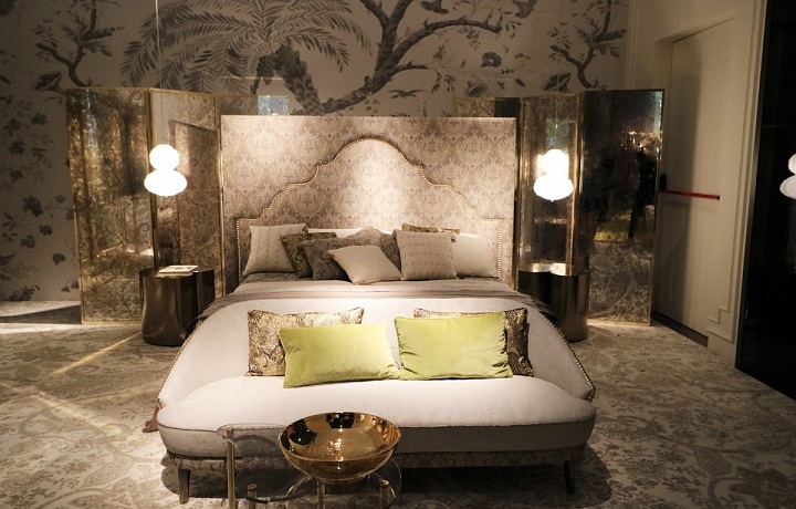 Novelties include the beautiful Caral sofa, where you can see the perfect balance between classic and modern design. It contains the paisley pattern, which is typical for the brand: the Etro Home version of a luxury ethno style! The Woodstock sofa has an air of elegance, with a comfortable mattress and rounded armrests. Coupled with pleasant cushions, it becomes the perfect place for dreaming and relaxation! Just like the perfect bedroom that also had its place at the fair!