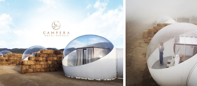 Hotel Campera is located in the Baja California wine-producing district. It owns 10 deluxe bubbles, in which you can relax and pleasantly spend part of your holiday. Each bubble is dominated by its own bathroom, a full-size bed and luxurious furnishings. The bubbles are designed to withstand the most aggressive climates. They have been tested in harsh conditions and pressurised so that they offer a safe and perfect experience. The bubbles are air-conditioned and offer unique comfort.