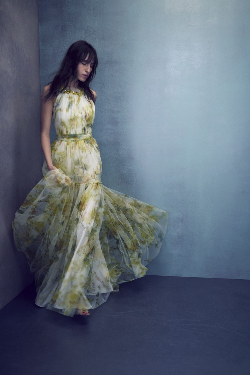 British fashion designer Jenny Packham was allegedly inspired by the sophisticated beauty of Japanese gardens when creating her new collection. In my opinion, the truth is elsewhere: this lady was clearly inspired by the film “Saturday Night Fever”… nothing more.