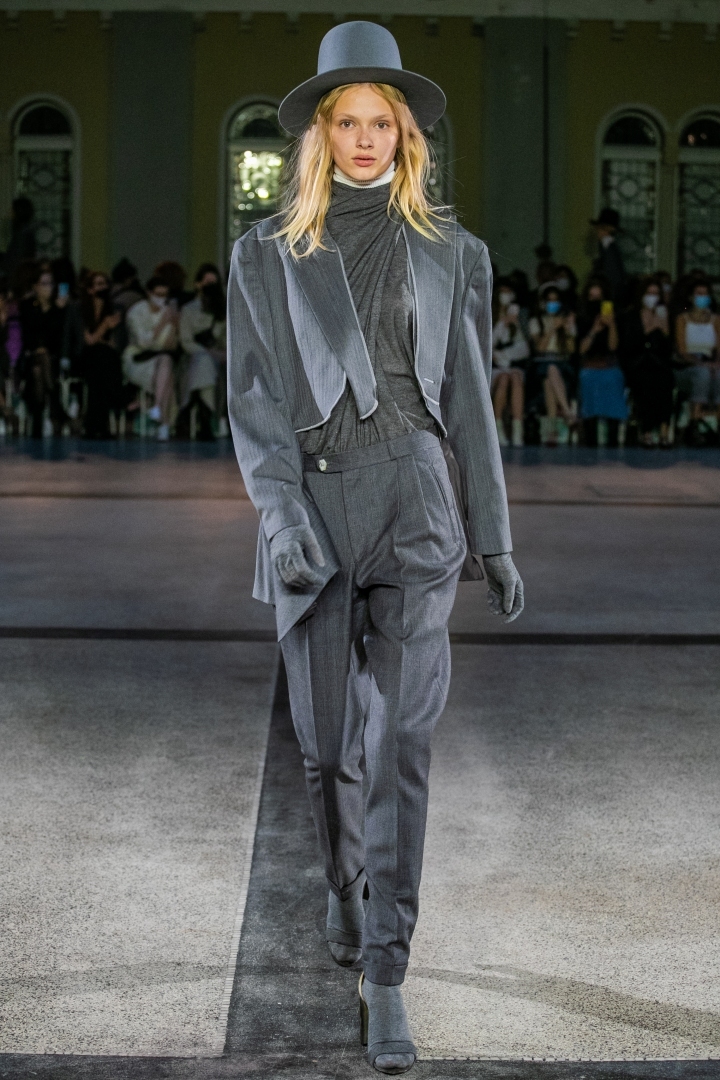 I was really looking forward to Jakub Polanka, not only because I'd heard only good things about him, but also because I was curious about what fashion show he'd pull off in the monastery of St. Gabriel this year. I admit that when his models began to appear on the catwalk, accompanied by gloomy autumn music, I had goosebumps all over my body. The long-legged girls in gray coats and black top hats looked like they were from another world.