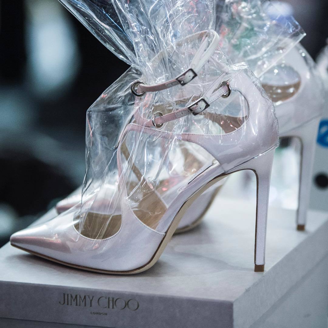I love shoes by Jimmy Choo, just like almost every other woman on this planet. Unfortunately, looking at the S/S 2018 collection, I am somewhat taken aback. Why on earth would anyone wear beautiful high heels wrapped in a plastic bag like rolls from the supermarket? Not to mention the odour when you take them off …