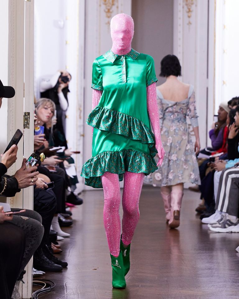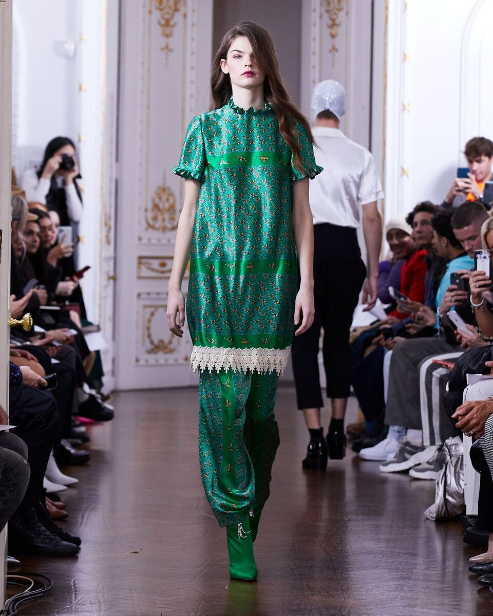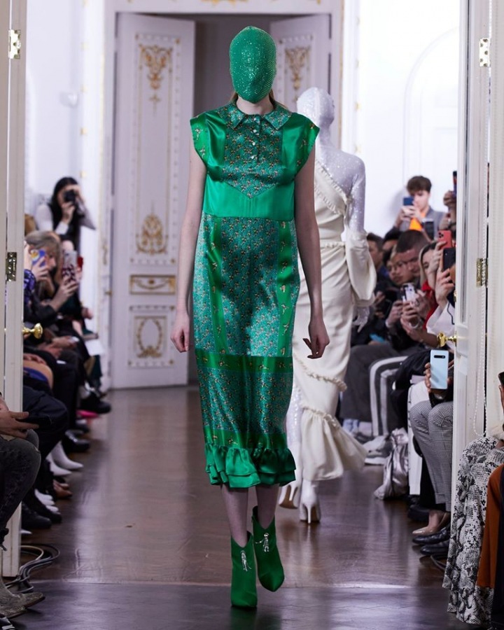 The green color is very expressive, and not everyone can afford it. However, since the designer has the entire collection set in the countryside look, I shall forgive him. Materials and patterns are just great. Plus, I imagine how comfortable I would feel in this model without wearing some strangling underwear...