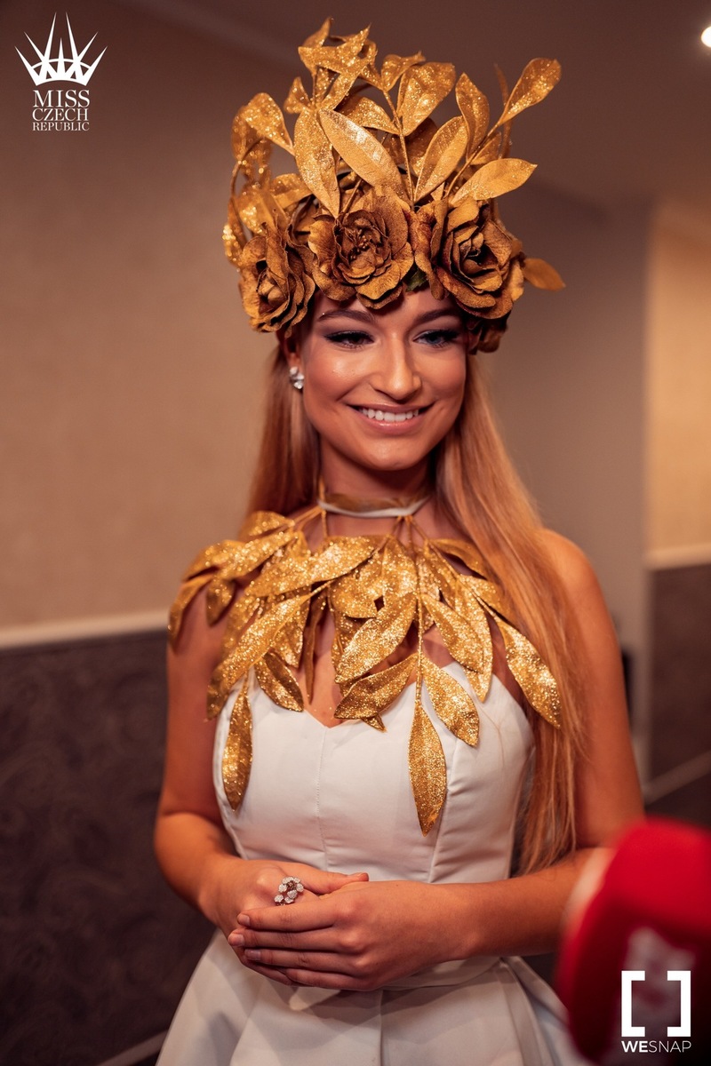 That's why Kateřina does not wear a classic folklore costume this year, but a national costume. The designer David Hanykýř designed the divine gown in national colours and stylist Sam Dolce created the gold crown and jewellery. Gold, according to the designers, shows the essence and wealth of the Czech country.