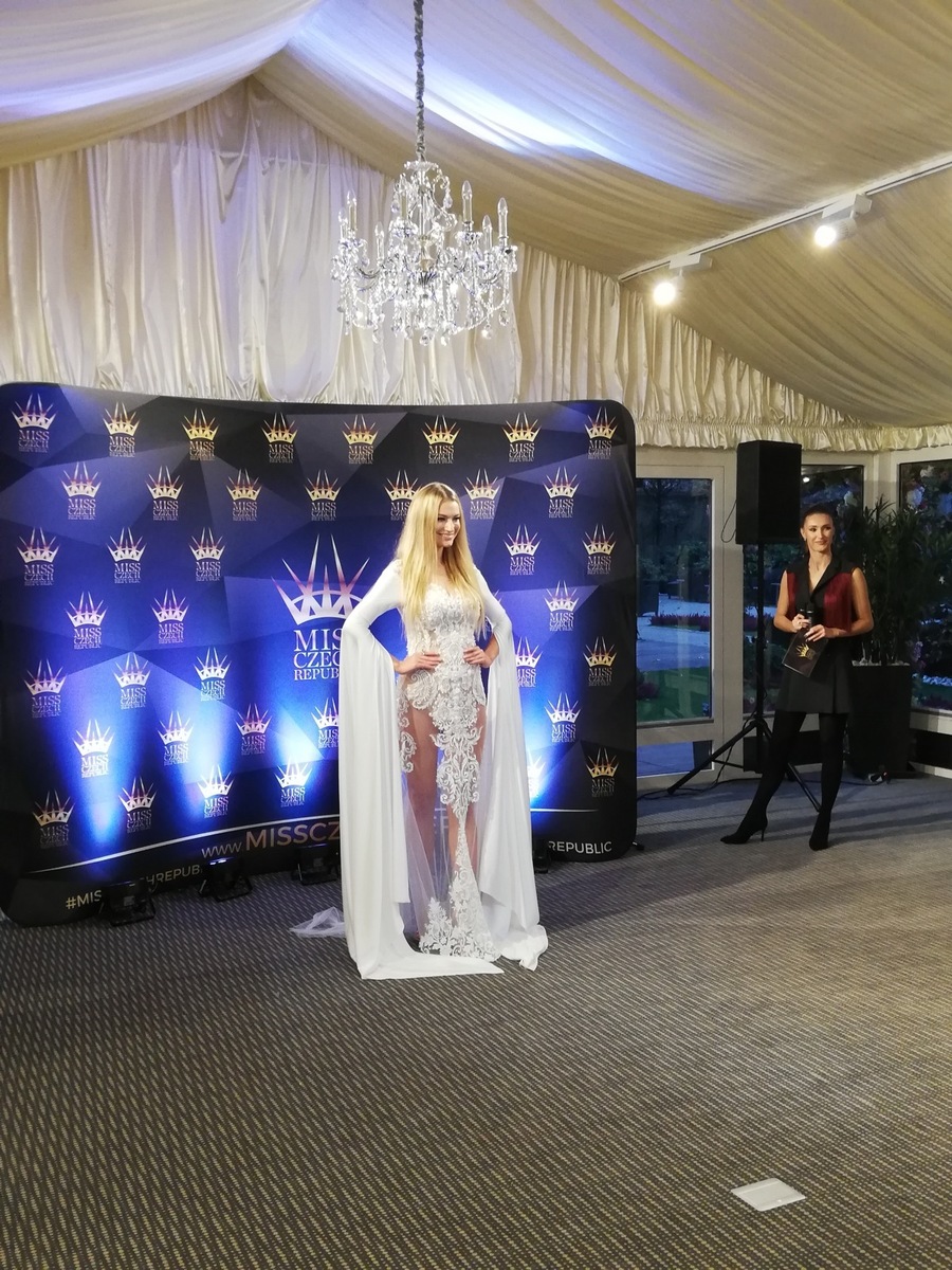 In addition to a national costume, Kateřina introduced the other two gowns she would bring with her to China, and you'll be amazed, even those are snowy white, because this colour is just right for Kateřina, according to the designers. The first dress in decorative and slightly gothic style was created by designer Tereza Sabáčková. She told us that they still work on sensual details of these dress, and the train needs to be decorated.