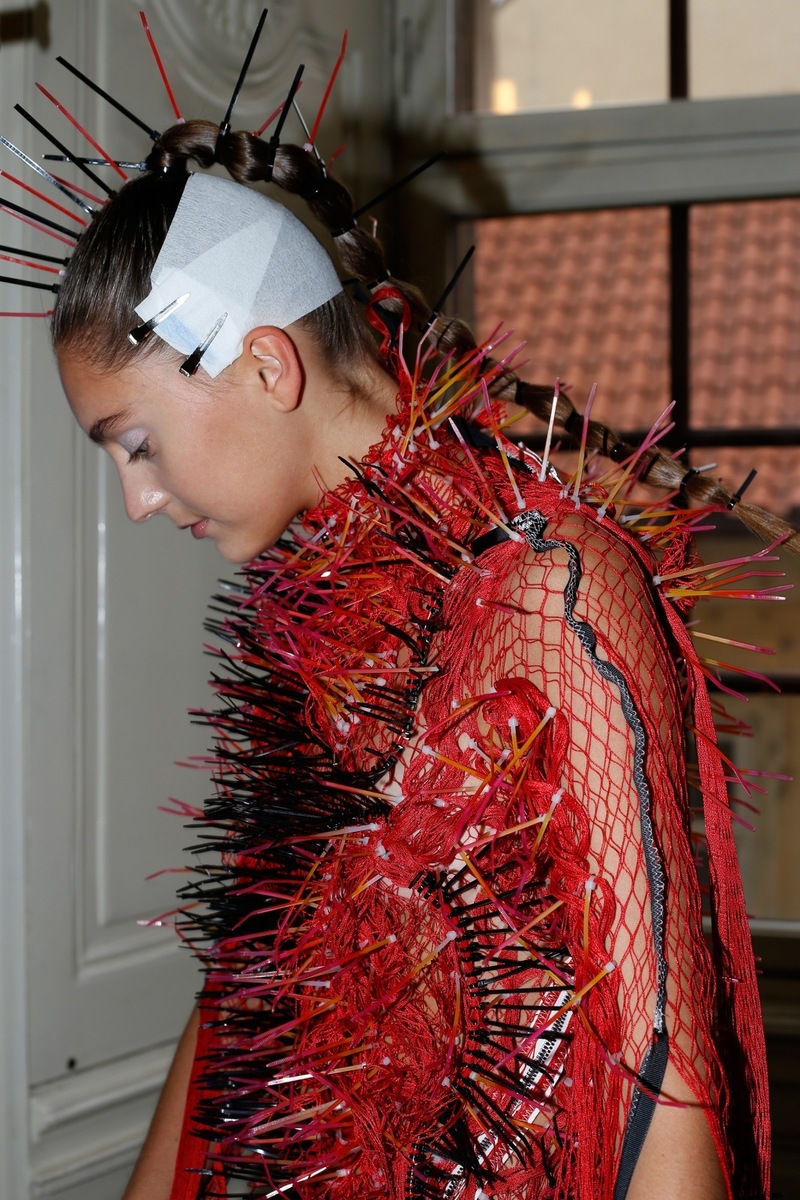 This year’s show by Zuzana Kubíčková was very demanding for everybody behind the scenes. We had to make braids on more than thirty models within a very short time. Braids are always a painful affair for the models and a major trial for the hairdressers.