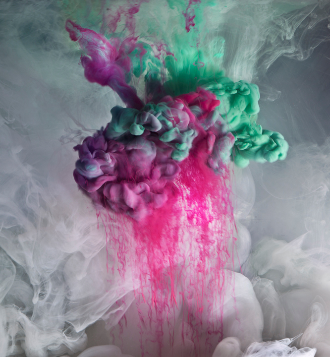 Of course Kim Keever does not want to reveal all the secrets behind his unique pieces. Very simply, however, it is that he lets paints together with water and other chemicals interact together in a huge fish tank. During the exciting moments when the colours are fighting and swirling together, he takes thousands of photos from which he then chooses one or two special shots. Then the tank is cleaned in order to be prepared for implementing other works.
