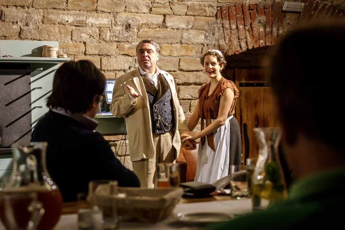 A luxurious four-course menu, unlimited consumption of delicious beer and an amazing cultural experience. The unusual atmosphere is accentuated by the magnificent surroundings of the cellar rooms with the huge fireplace and stylish furnishings. Accept the invitation to a first-class dinner and the unique theatrical performance with clues which you have to resolve!