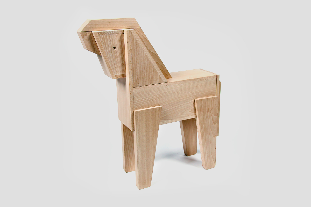 Listen to the one about the horse with the noble name NOXUS. It was born in the Czech Republic. Its body is made of beech wood, which means it can withstand many hours of riding, and will boldly join any battle. It is black and thanks to its wheels, it can race the wind. But it is not easy to saddle. It most enjoys playing with its friends, the swan BULA and the little bird TULU.