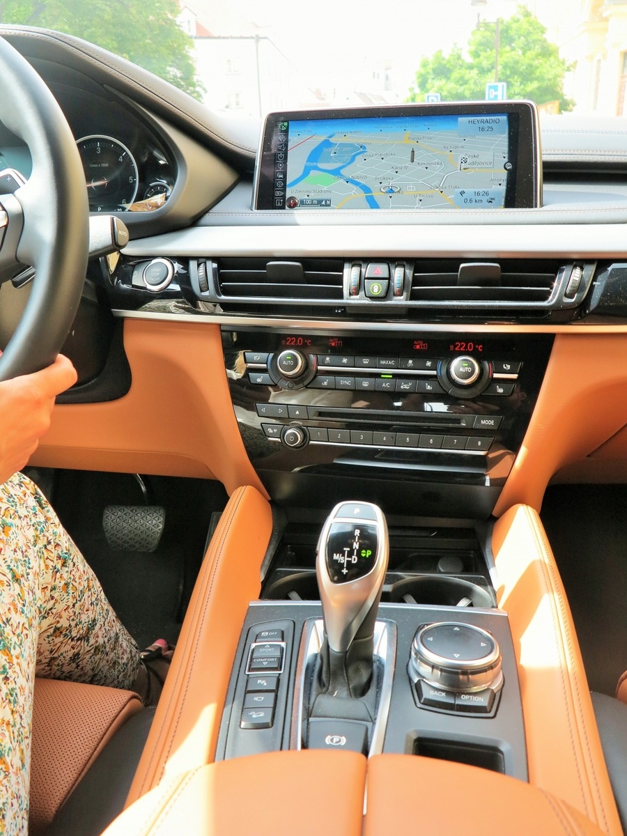 It is a beautiful sunny day and I have booked a car for the weekend from Renocar in Čestlice. I am setting off from Prague to Český Krumlov and from the first sight of the exterior and into the interior it becomes clear to me that I will really enjoy this ride! The slightly elongated body of the new BMW X6 makes it more powerful and elegant, which means that it catches everyone’s attention at first glance. I’ve received keys, but you will not find the classic key there. You do not even have to take this “key” out of your pocket to get in the car and drive it off. You open and lock the car without it, but you have to have it somewhere with you. So start the car by simply pressing START/STOP and let’s take off for a ride. Strikingly inventive, right?!