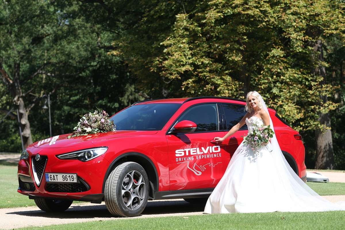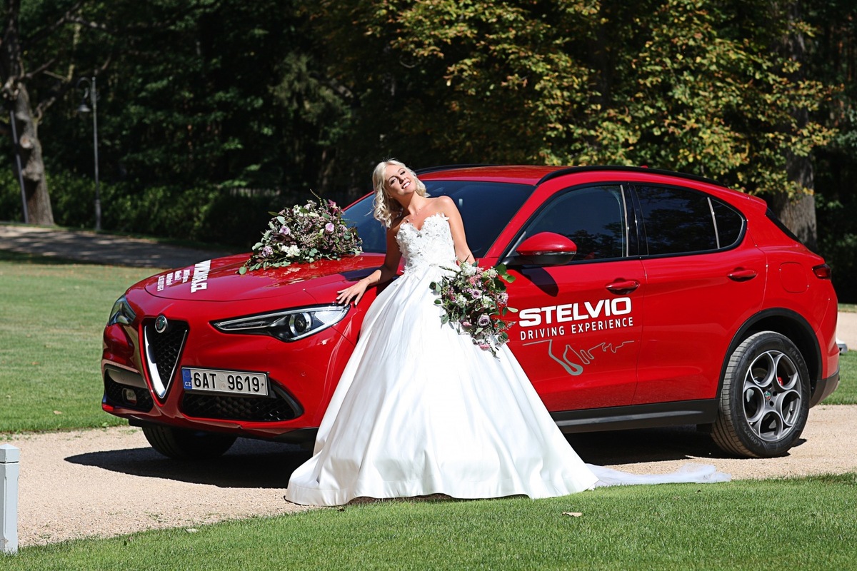 On the way to the airport, I look at the interior of a luxury car that is really perfect. I must admit that my fiancé's taste was always excellent! The Alfa Romeo Stelvio, which we borrowed from IMOFA, and I go really well together: both of us are passionate and full of energy. During my drive I panic for a moment. "Have I made the right decision? Is Petr worth throwing it all away?" I open the box with the glittering diamond wedding rings, listen to my wedding song play loudly, and think, "Should I go back to Chateau Mcela to my fiancé or go to the airport?" But suddenly I close the box and put it away in red leather red armrest. I step out of the car, admire its elegant exterior and throw out the wedding decoration in the form of a bouquet from the bonnet. Suddenly an unbelievable feeling of freedom awakens in me.