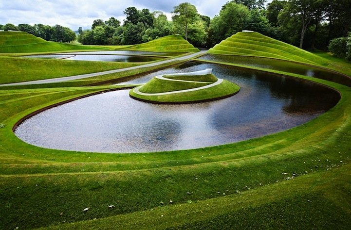 He is chiefly interested in always maintaining the traditional beauties of the garden, which are however improved by visual lines using new instruments and plastic materials. The excellent landscape art of Charles Jencks shows that deluxe nature can be transformable as an artificially created structure. His work is a celebration of nature in combination with scientific and architectural design. Jencks’ gardens and parks are distinguished by his unique style based on his unique experience.